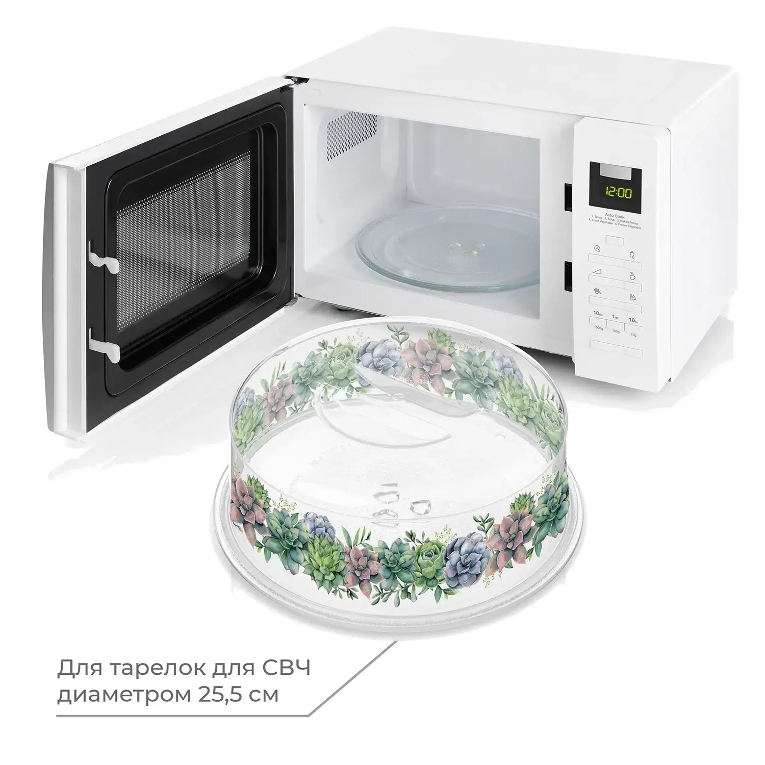Крышка для микроволновки 'Botanica' диаметром 25 см — это идеальное сочетание функциональности и эстетики. Прочный полипропилен без бисфенола А защищает вашу технику от брызг, а стильный декор из суккулентов создает приятную атмосферу на кухне.