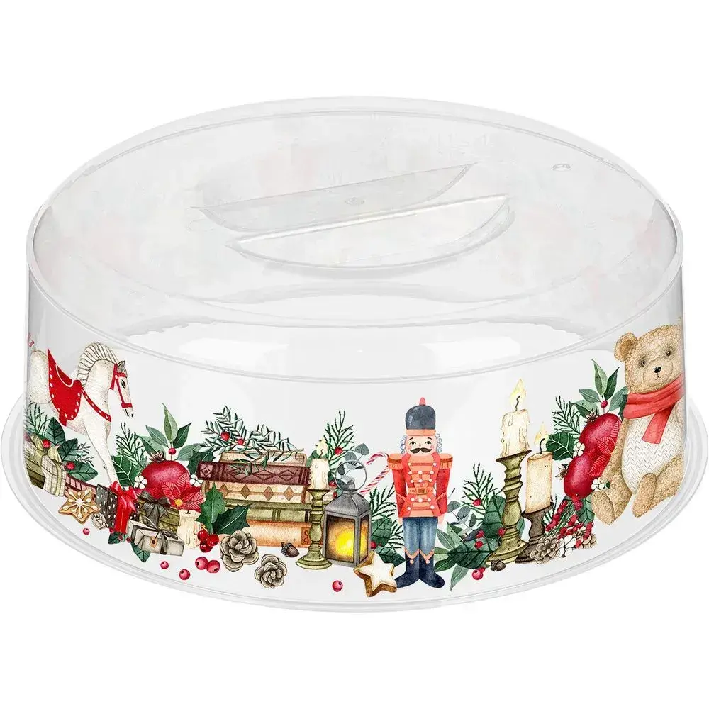 Крышка выполнена из безопасного прозрачного пластика, устойчива к перепадам температур и легко очищается. Яркий принт представлен в белых, красных, зелёных, жёлтых оттенках и украшен мотивами медвежонка, лошадки, щелкунчика, еловых веток, свечей и ягод. Используйте крышку на кухне, во время праздников и для ежедневного хранения продуктов — она украшает интерьер и облегчает быт.