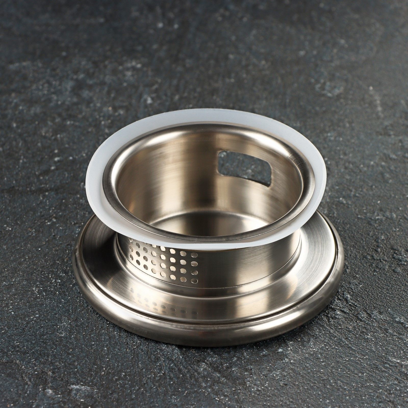 Герметичная крышка из нержавеющей стали обеспечивает удобный слив жидкости и защищает от засоров. Хромированная поверхность сочетает практичность с эстетикой современной кухни.