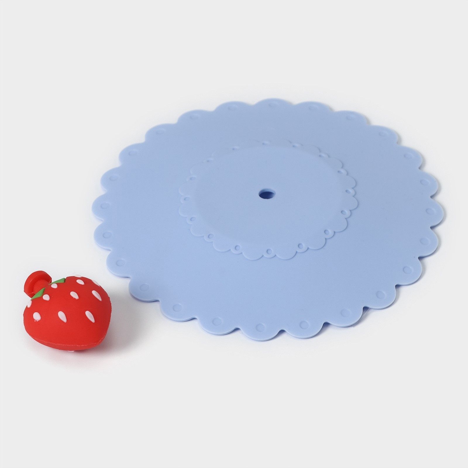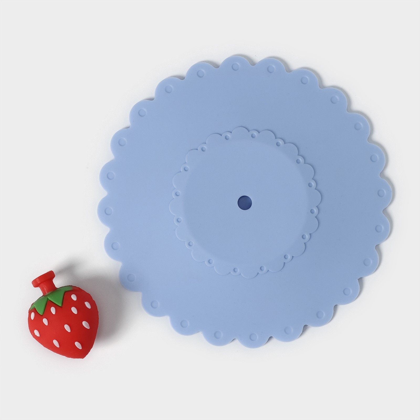 Крышка-непроливайка силиконовая 'Клубничка', d=11 см, голубой