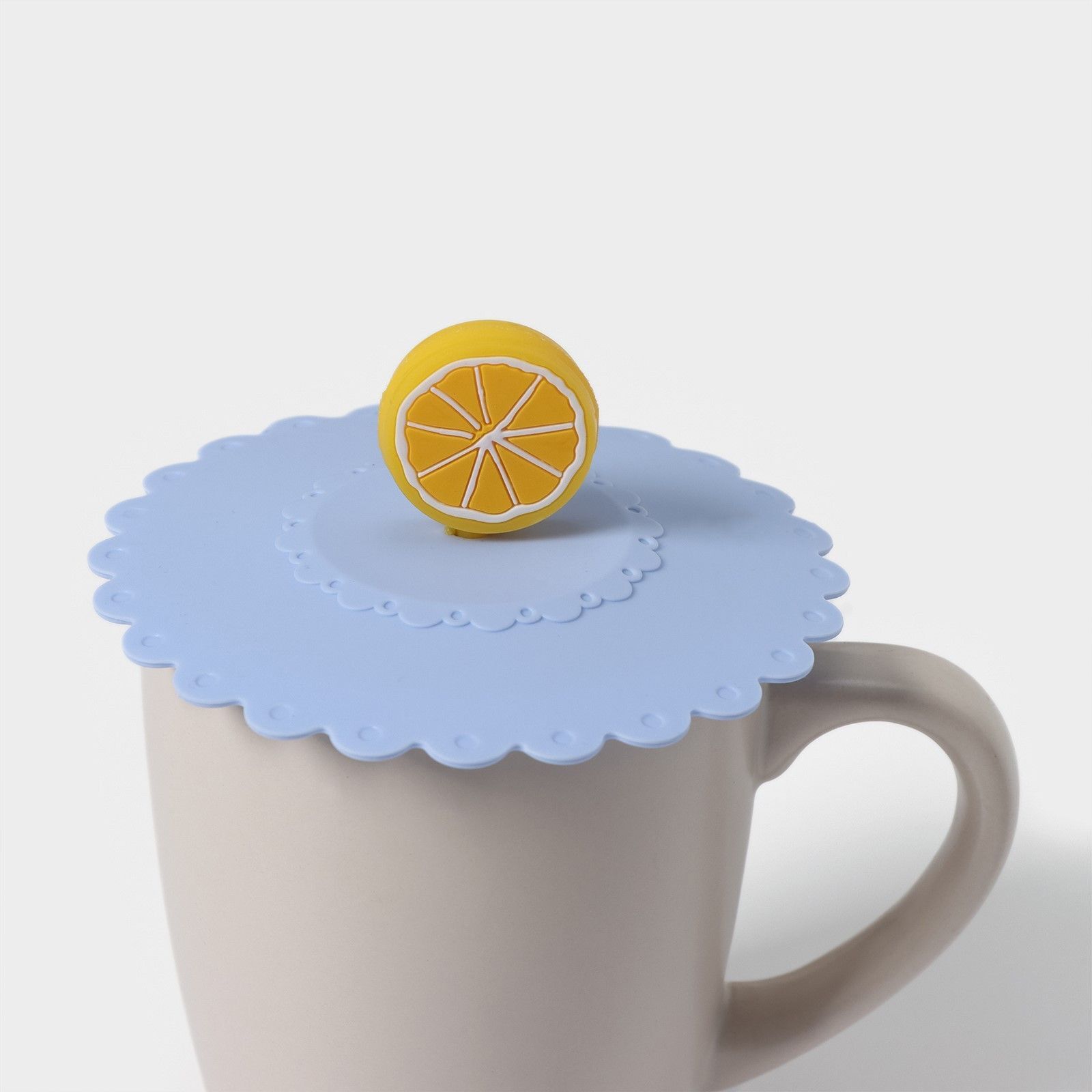 Крышка-непроливайка силиконовая 'Лимон', d=11 см, голубая, для чашек и кружек