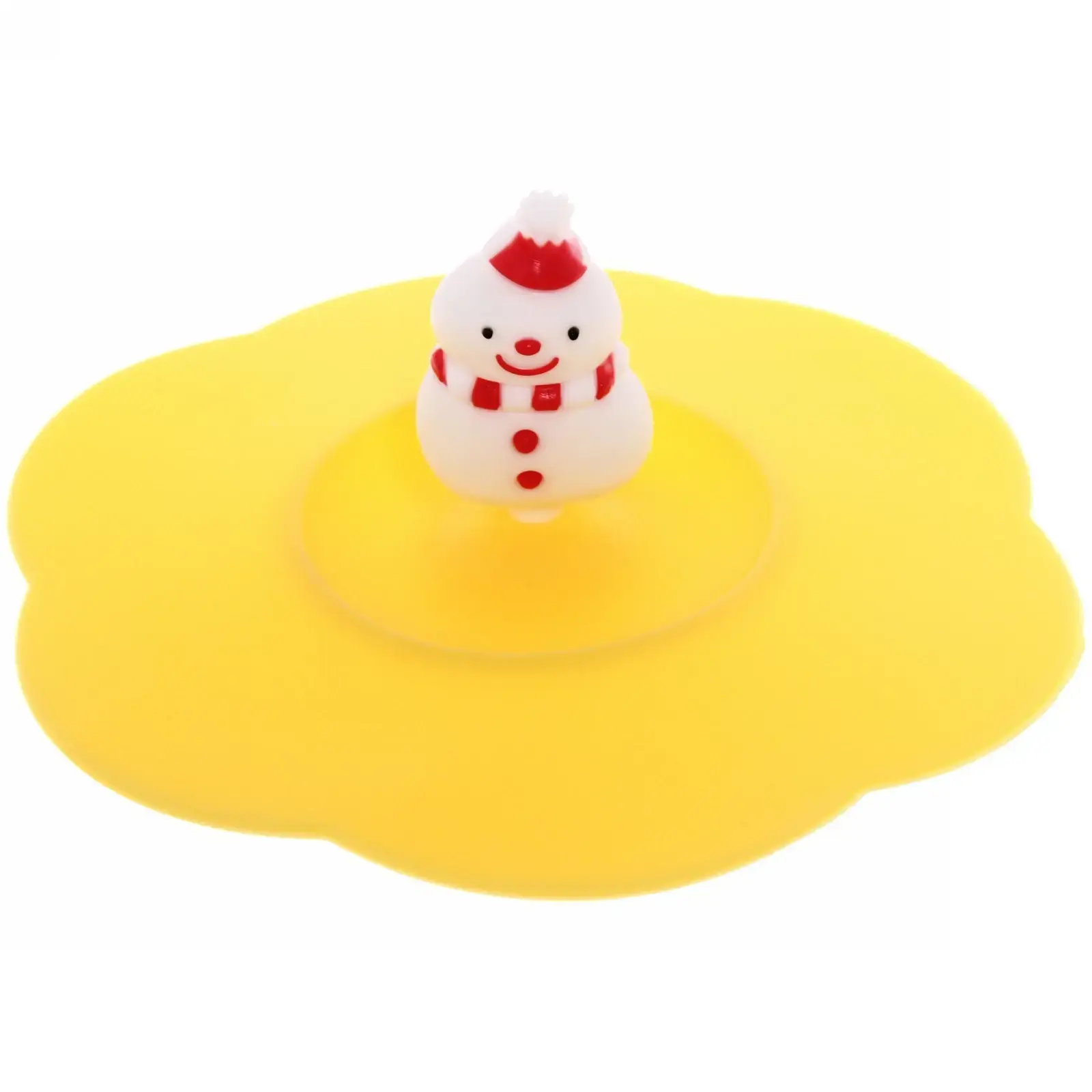 Крышка силиконовая для кружки 10см, желтая, с рисунком 'Снеговик', для дома и офиса