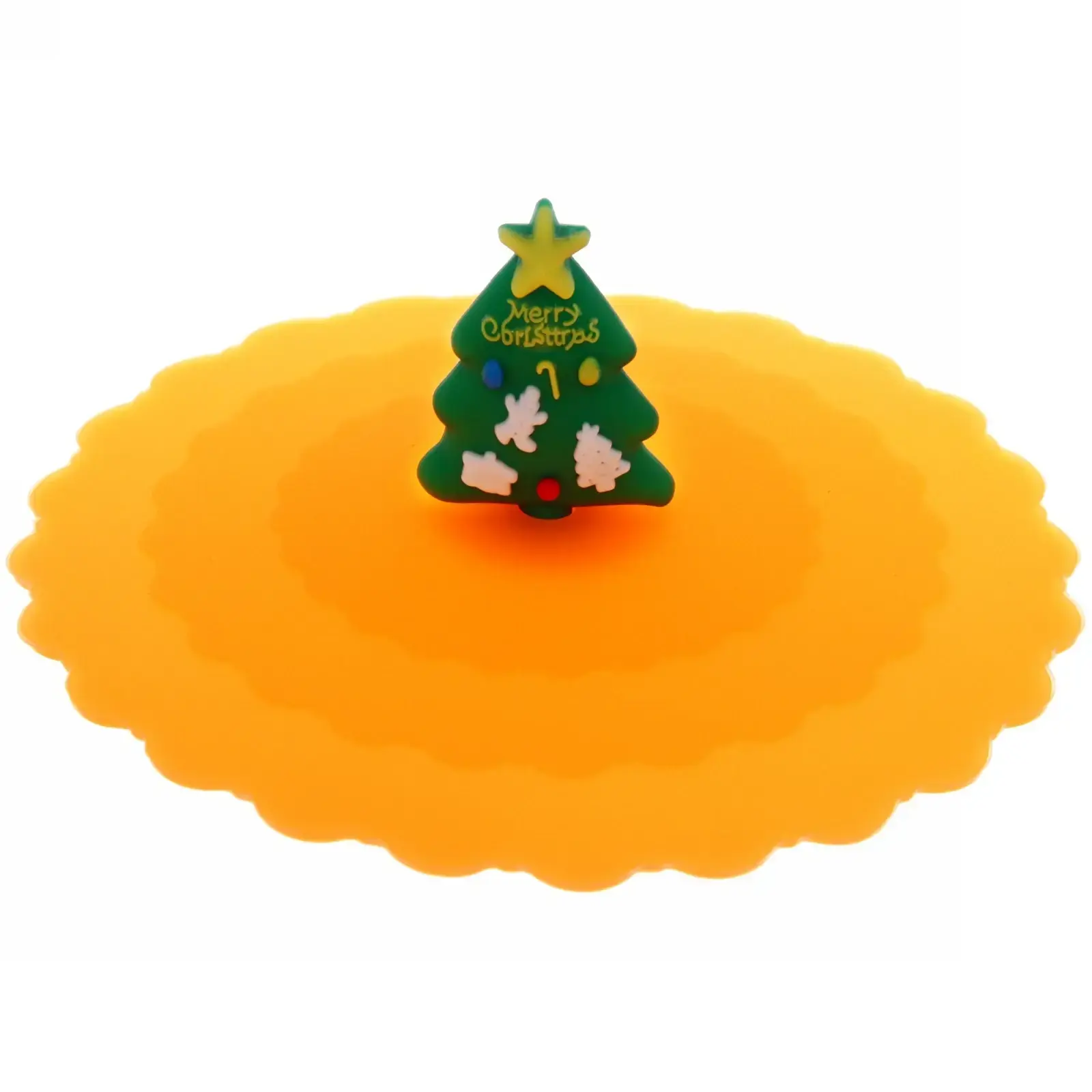 Крышка силиконовая для кружки 10см, "Ёлочка", оранжевая, праздничный декор