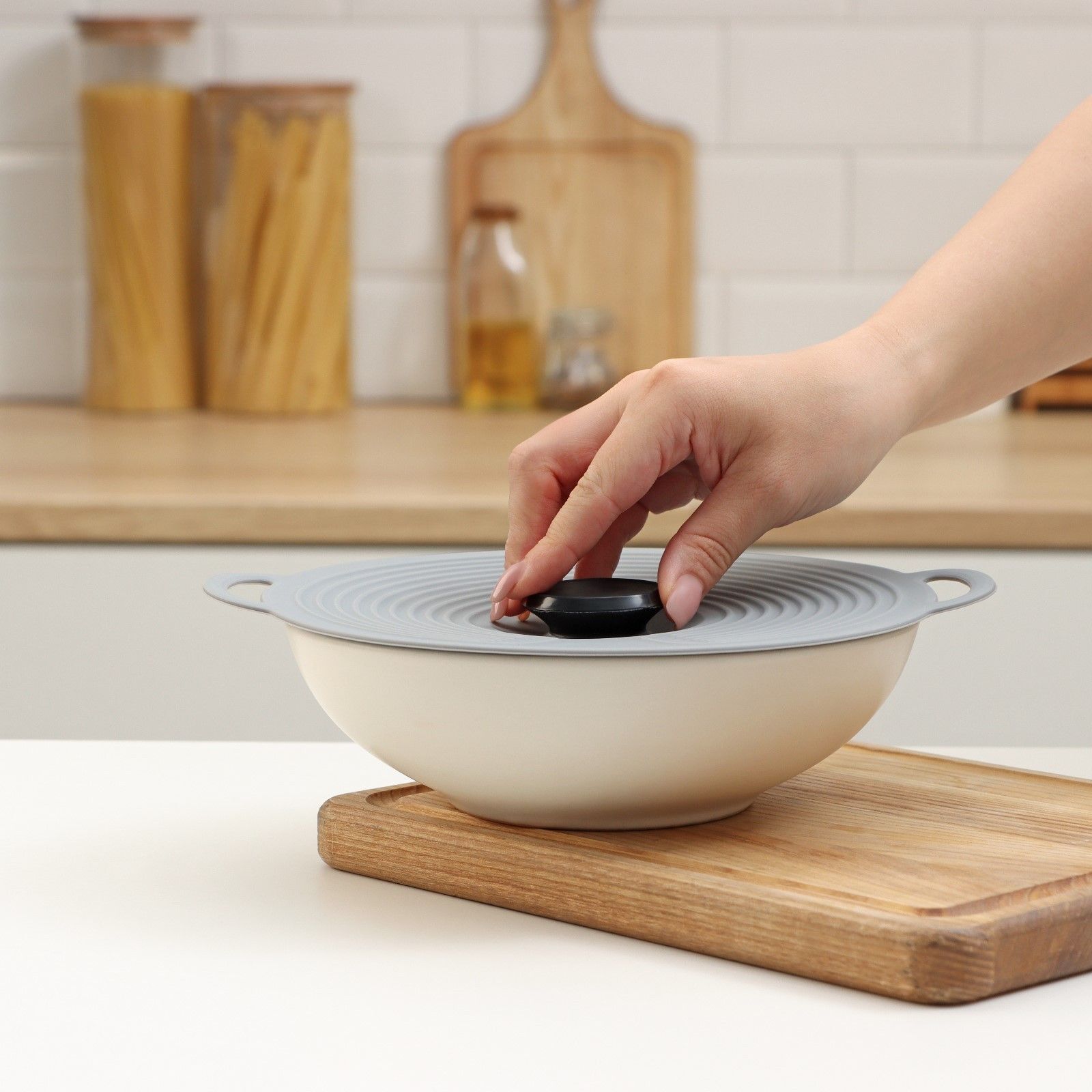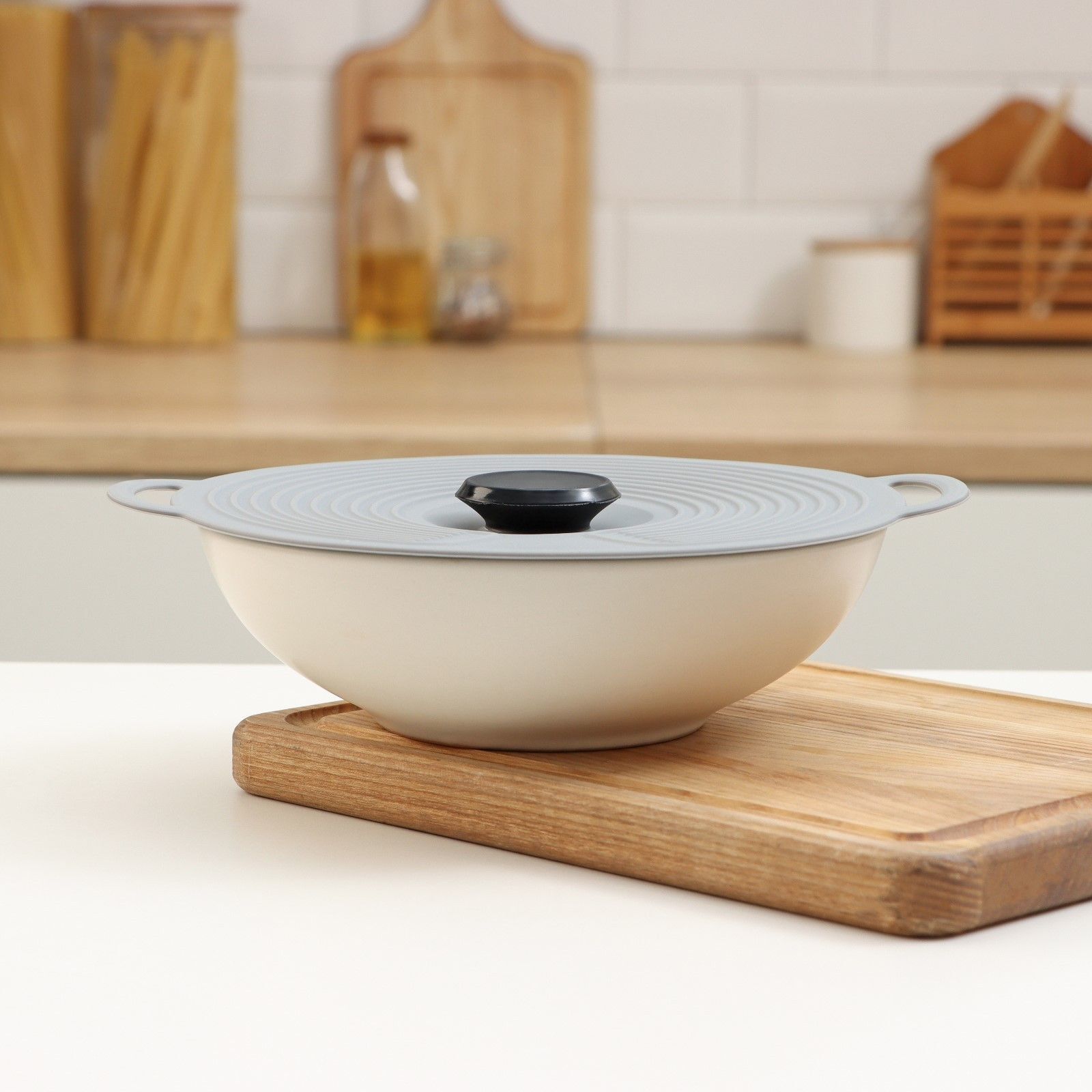 Крышка силиконовая универсальная d=20 см, серая, для кастрюль и мисок