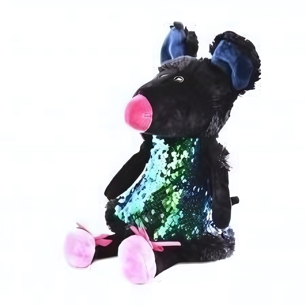 Подарите радость ребенку — крыска «Эмили» станет не только забавной игрушкой, но и настоящей подружкой для обнимания. Мягкая и приятная на ощупь, она отличается необычным дизайном: благородный черный цвет украшен фиолетовыми, синими и зелеными бликами, а ткань красиво переливается на свету. Особенные детали — милые розовые бантики на лапках и розовый носик с нежными подошвами — делают игрушку запоминающейся и яркой.