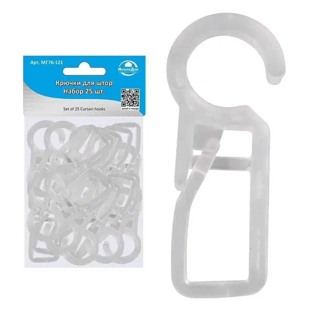 Произведено в России с соблюдением стандартов качества. В комплекте поставляется 25 идентичных крючков — идеальный вариант для полной замены старых креплений или создания новых композиций из штор.
