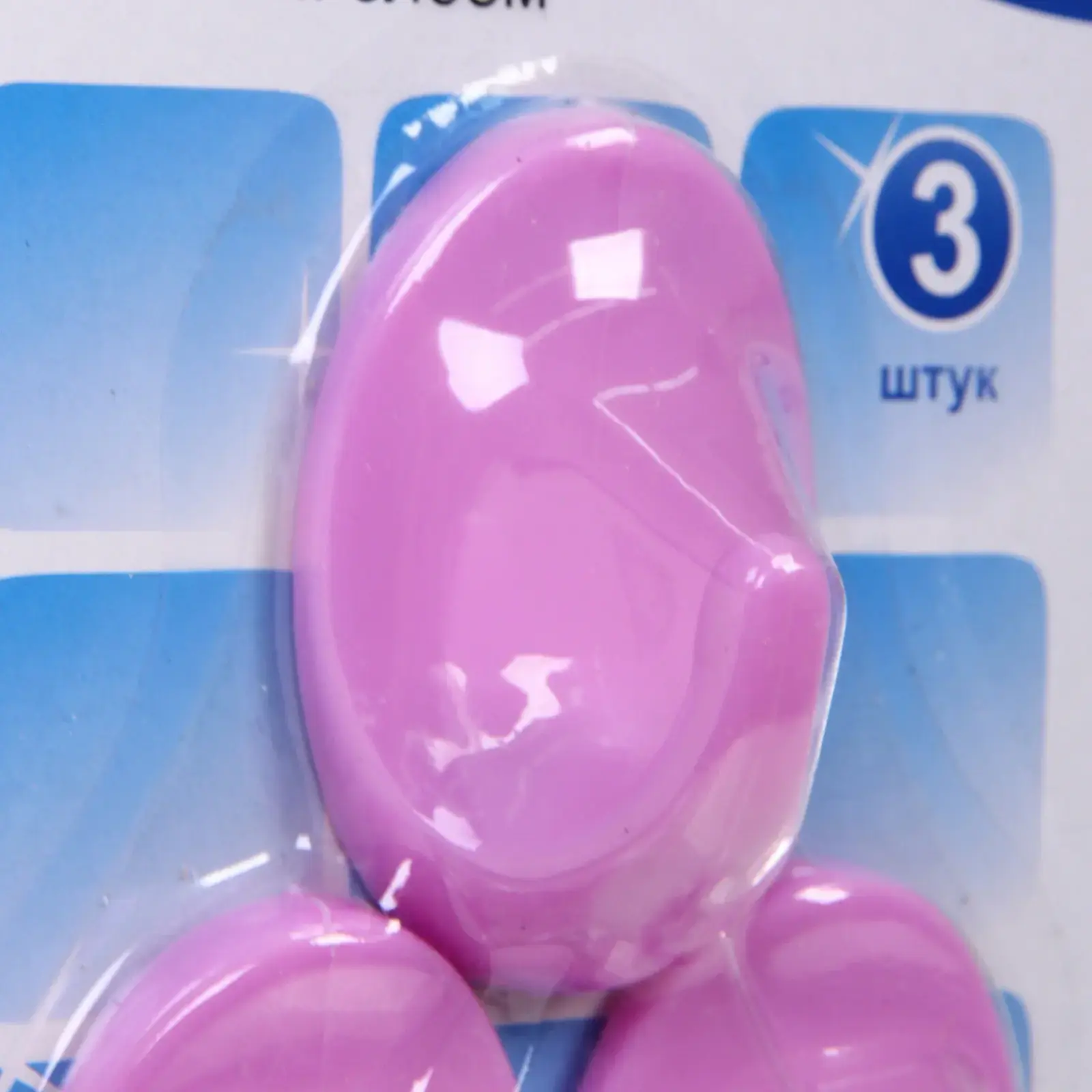 В наборе вы получите 3 пластиковых крючка, каждый из которых имеет овальную форму и гладкую поверхность. Цвет крючков — лиловый, что делает их не только функциональными, но и стильными. Эти крючки идеально подойдут для хранения сумок, полотенец или других мелочей, которые должны быть под рукой.