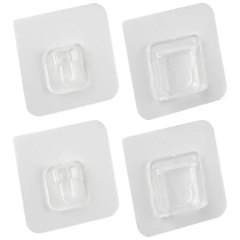 Каждый крючок состоит из двух частей: прозрачной основы с клейким слоем и съемного держателя. Такая конструкция позволяет легко заменять элементы при необходимости. Изготовлены из ударопрочного пластика, устойчивого к перепадам температур и влажности.