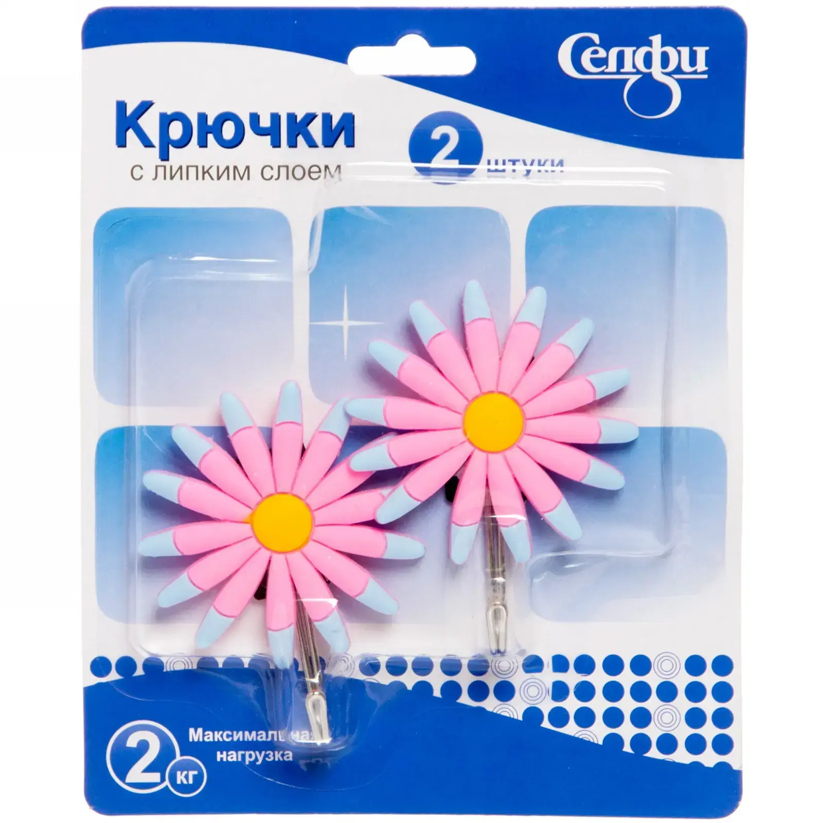 Крючки выполнены из качественного пластика и металла, что обеспечивает их долговечность. Цветочки имеют яркие розовые и голубые лепестки с желтой серединой, что делает их не только функциональными, но и стильными. Упаковка содержит 2 штуки, что позволяет вам сразу использовать их в разных местах вашего дома.