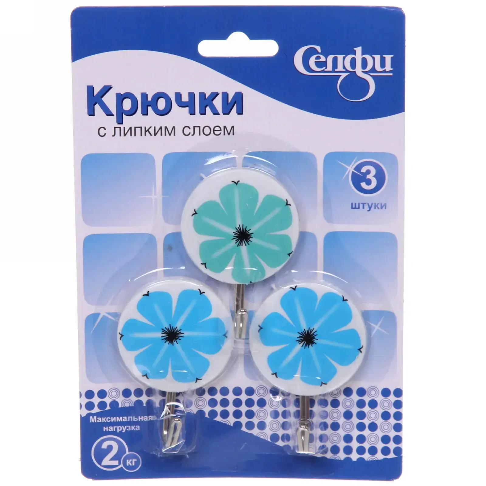 Крючки имеют круглую форму и выполнены в белом цвете с цветочным узором в голубых и черных тонах. Они компактны и не занимают много места, что делает их идеальными для небольших помещений. В упаковке вы найдете три крючка, что позволяет вам использовать их в разных местах или подарить друзьям.
