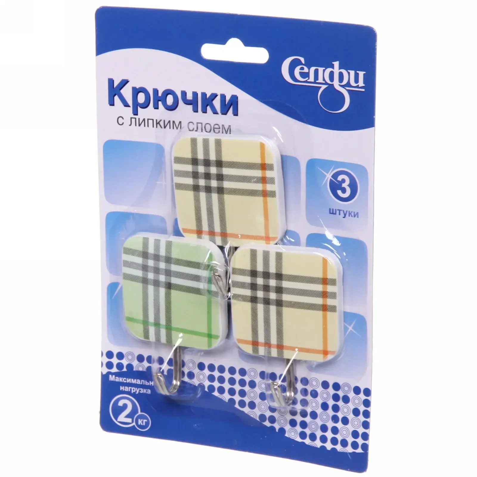 В упаковке вы найдете 3 крючка, каждый из которых имеет квадратную форму и уникальный цветовой дизайн. Один из крючков кремового цвета с зеленым узором, другой кремовый с серыми и оранжевыми линиями, а третий светло-зеленый с черным узором. Эти крючки не только функциональны, но и стильны, что делает их отличным дополнением к любому дому.