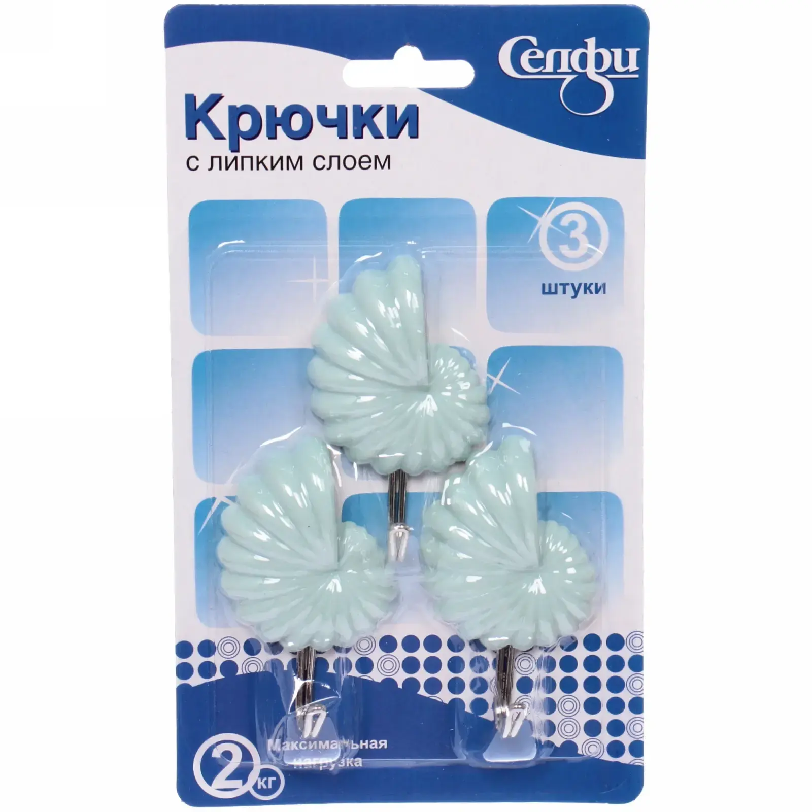 В комплекте — 3 крючка из металла и прочного пластика с гладкой, приятной на ощупь поверхностью. Цвет — светло-голубой, выигрышно смотрится в современном интерьере.