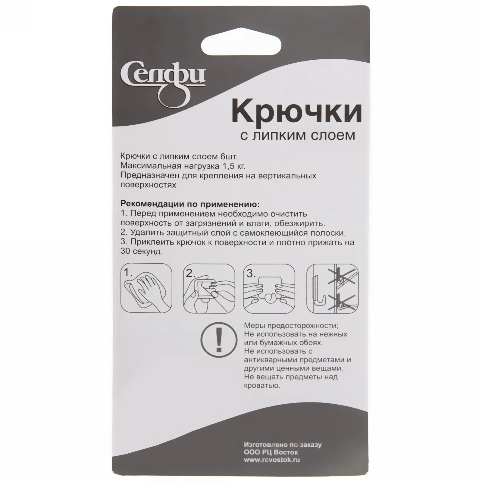 Каждый крючок имеет компактные размеры и выполнен из качественных материалов: металл и пластик, что гарантирует их прочность и устойчивость к износу. Упаковка содержит шесть крючков, что позволяет вам использовать их в разных местах вашего дома. Не упустите возможность сделать вашу жизнь более организованной и комфортной с помощью этих практичных крючков!