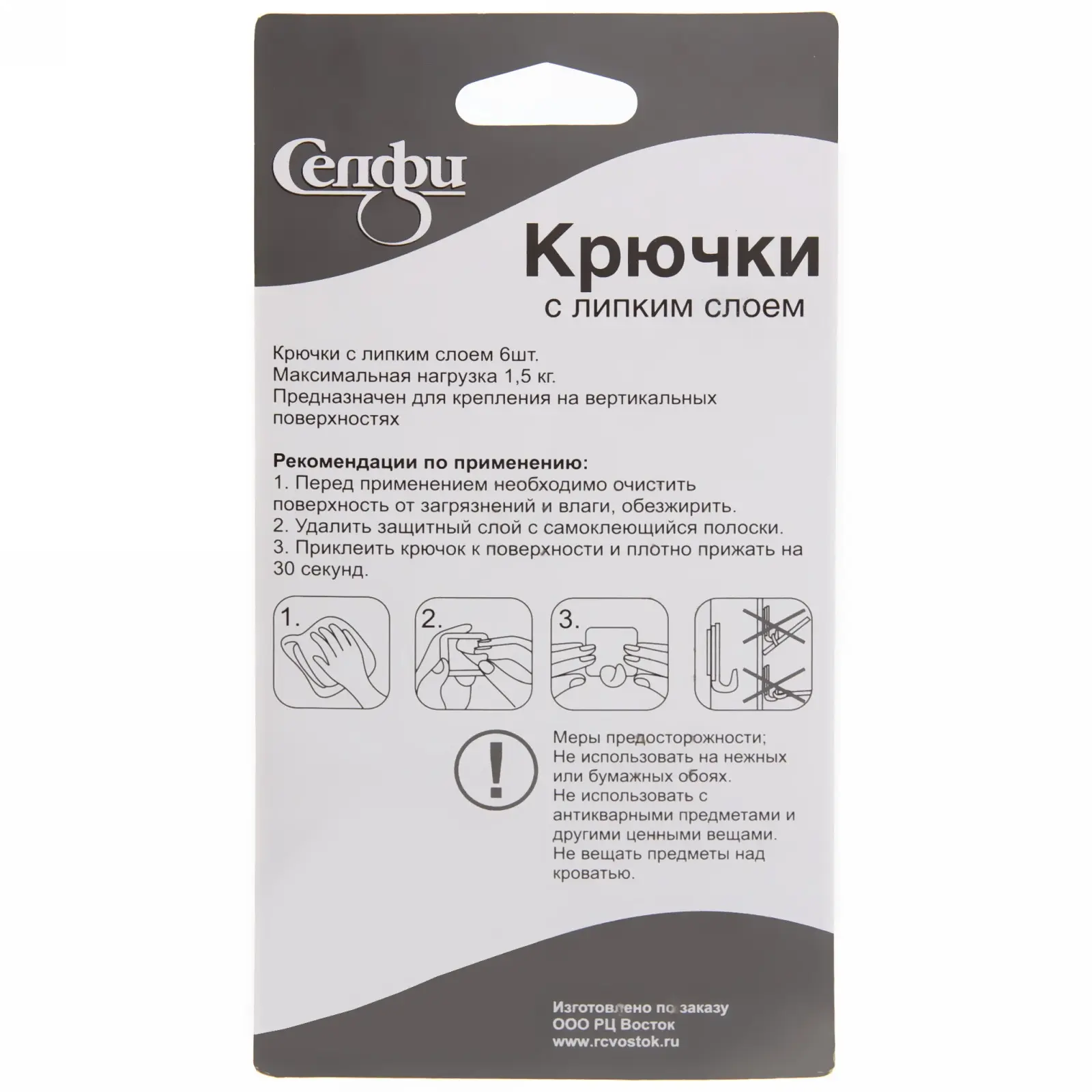 Нагрузка: до 1,5 кг на крючок.