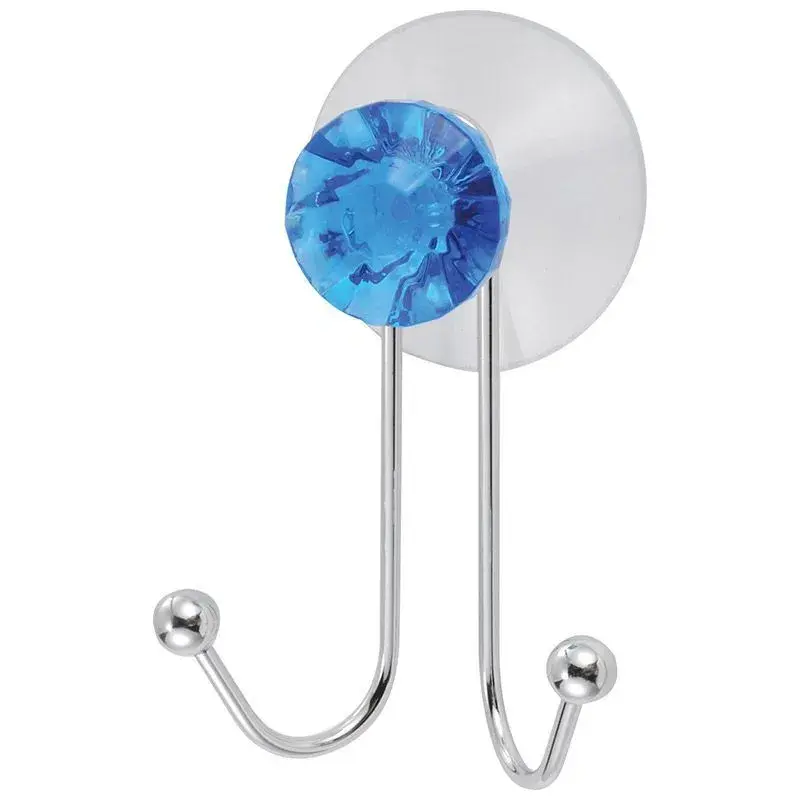 Крючок двойной «Бриллиант» на присосках, синий, для ванной и кухни, прочное крепление, модель W2790