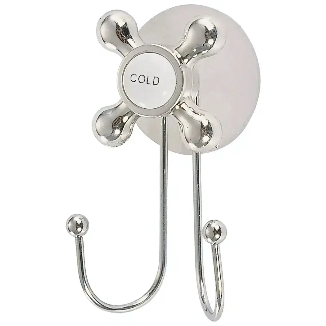 Крючок двойной на присоске «SPOT-BH-01», металл хромированный, дизайн вентиля, цвет в ассортименте