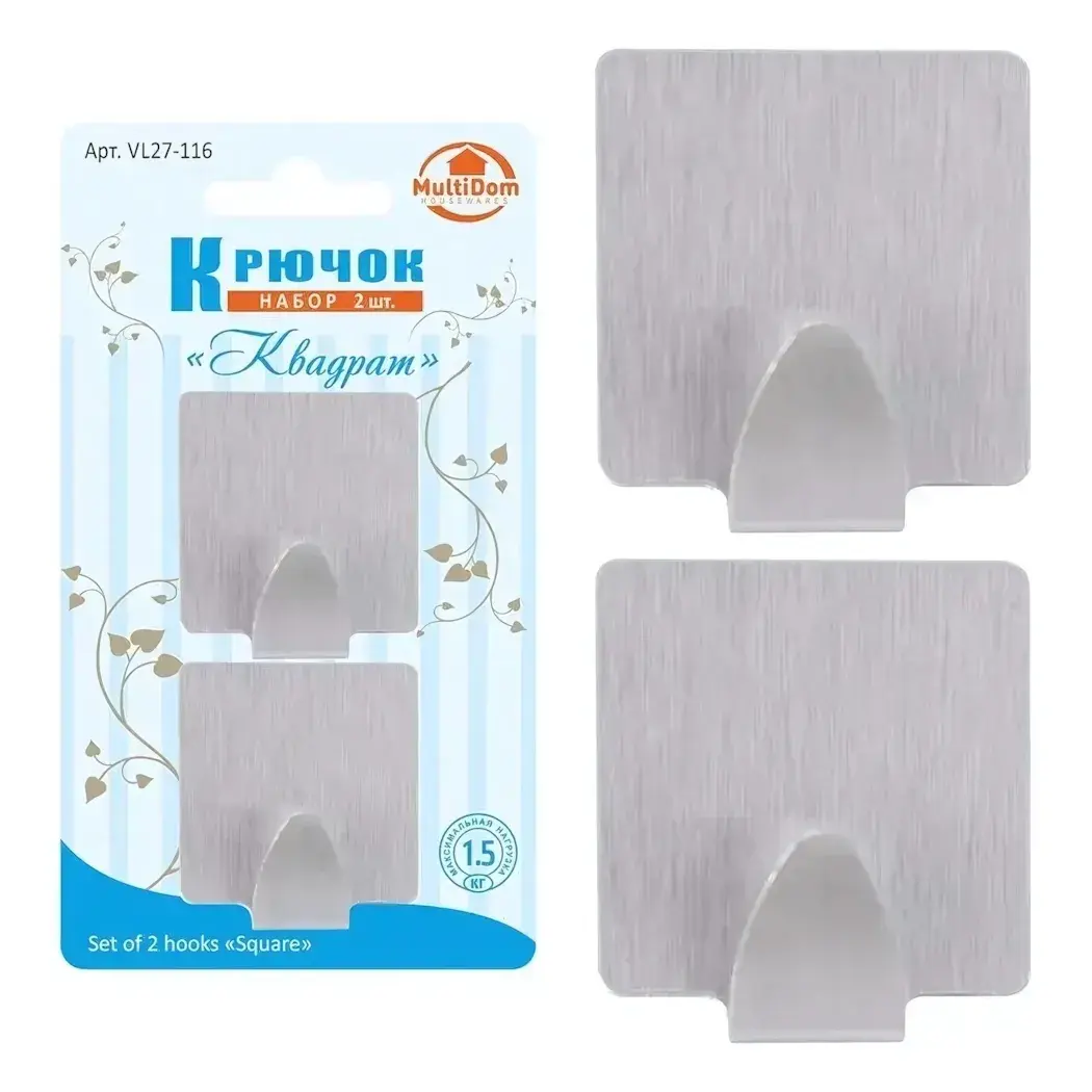 Крючок настенный 'Квадрат' / Набор 2 шт, самоклеящийся, макс нагрузка 1.5 кг