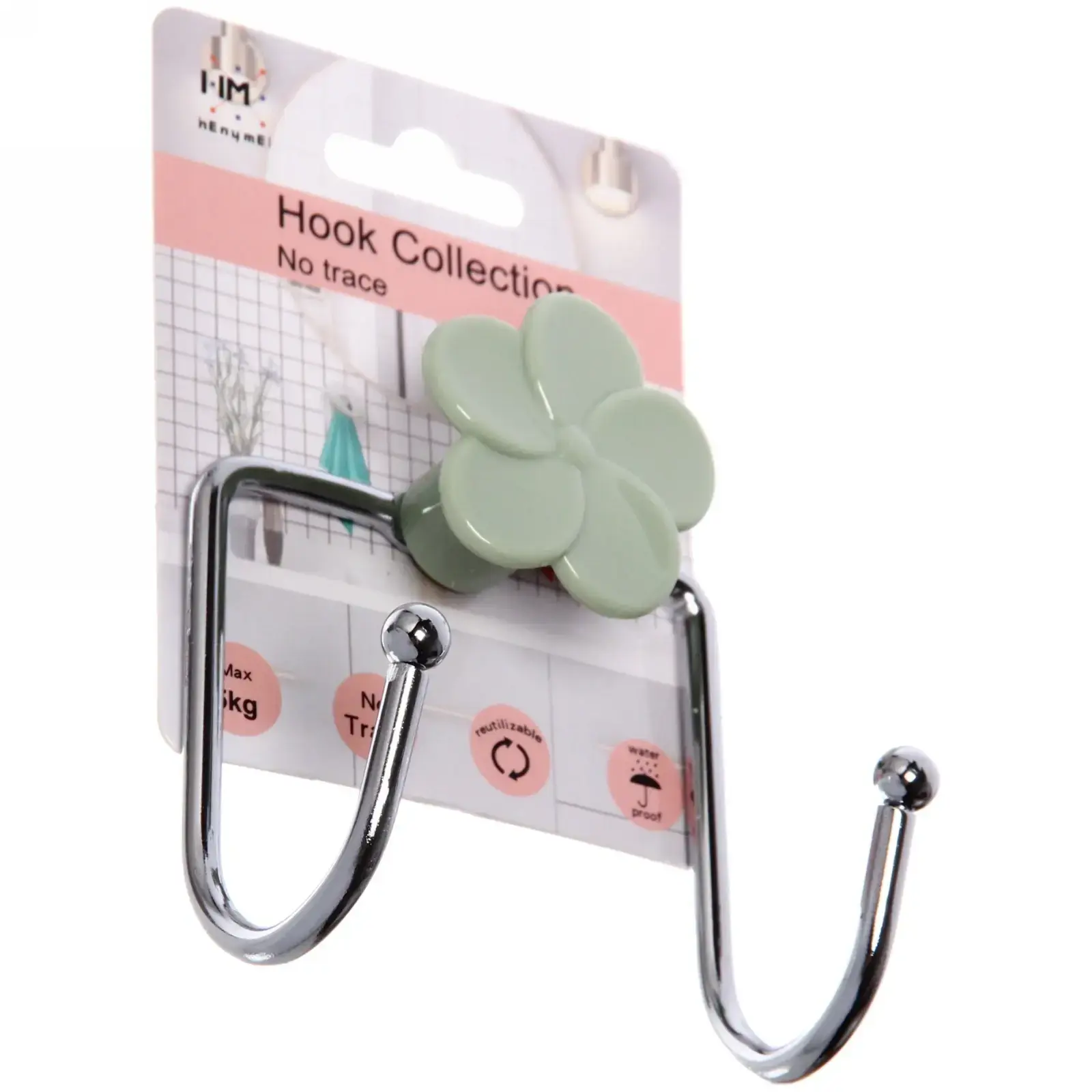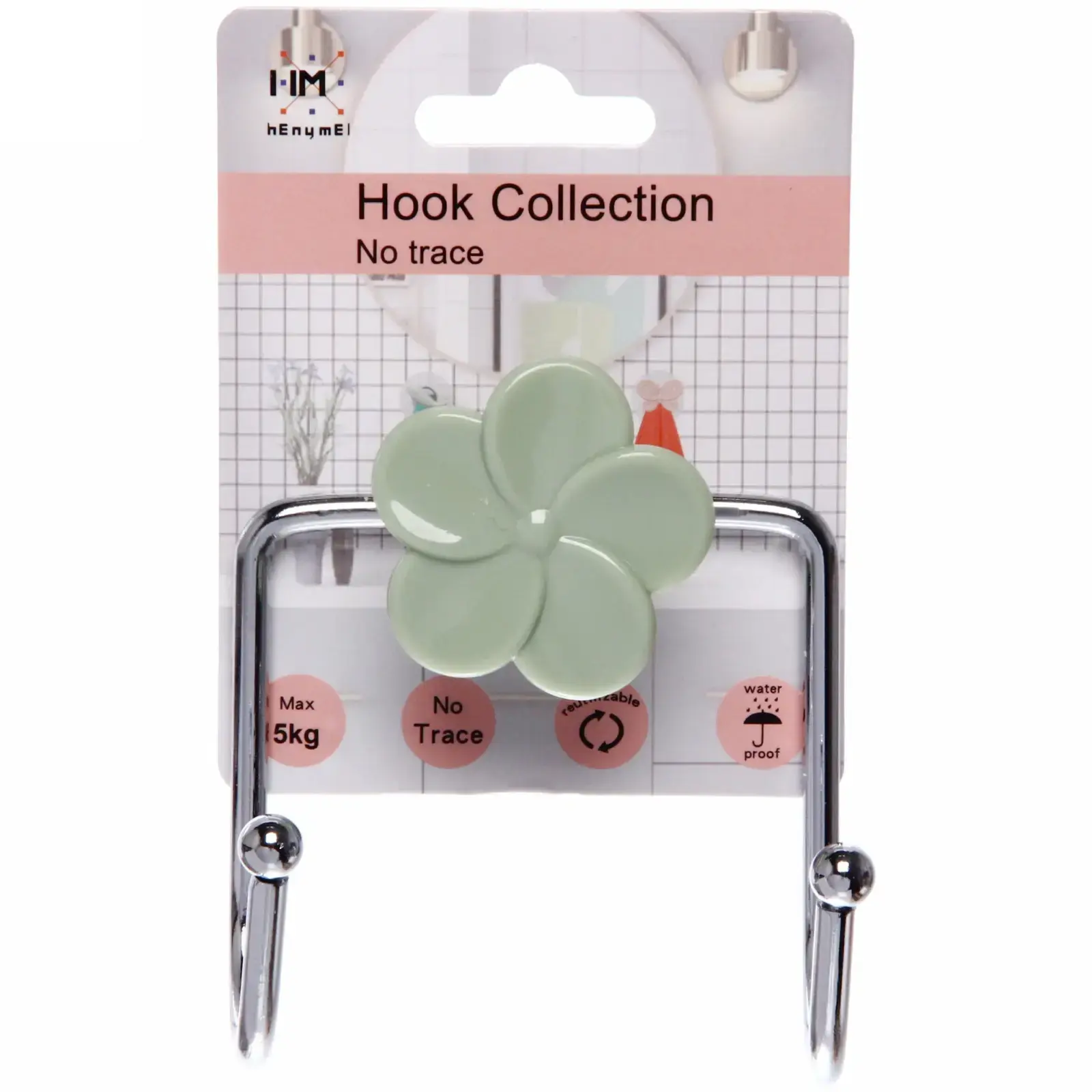 Крючок с липким слоем двойной, цветок зелёный, нагрузка 5кг, металл/пластик, водостойкий, без следов, серия "MH8043"