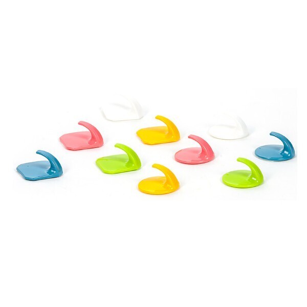 В набор входит 10 крючков разных оттенков для комплексной организации пространства. Компактные размеры позволяют размещать их на узких дверцах шкафов, стенах лоджий и в тесных прихожих. Гладкая поверхность легко очищается от пыли влажной салфеткой.
