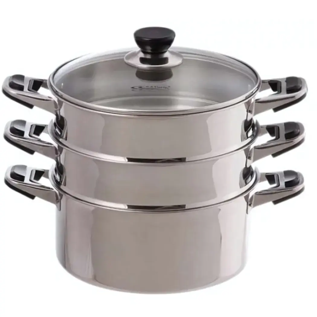 Эта мантоварка идеально подходит для тех, кто ценит здоровое питание и хочет готовить на пару. Она состоит из трех секций, что позволяет одновременно готовить мясо, рыбу и овощи. Просто заполните каждую секцию продуктами, налейте воду в нижнюю кастрюлю и поставьте на плиту. Подходит для всех типов плит, включая индукционные.