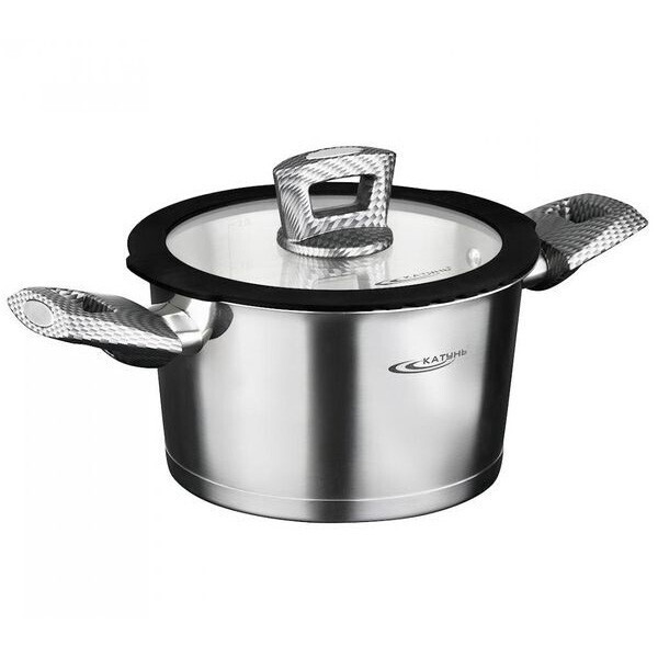 Кастрюля с крышкой «Катунь», нержавеющая сталь, 24 см, стеклянная крышка, удобные ручки
