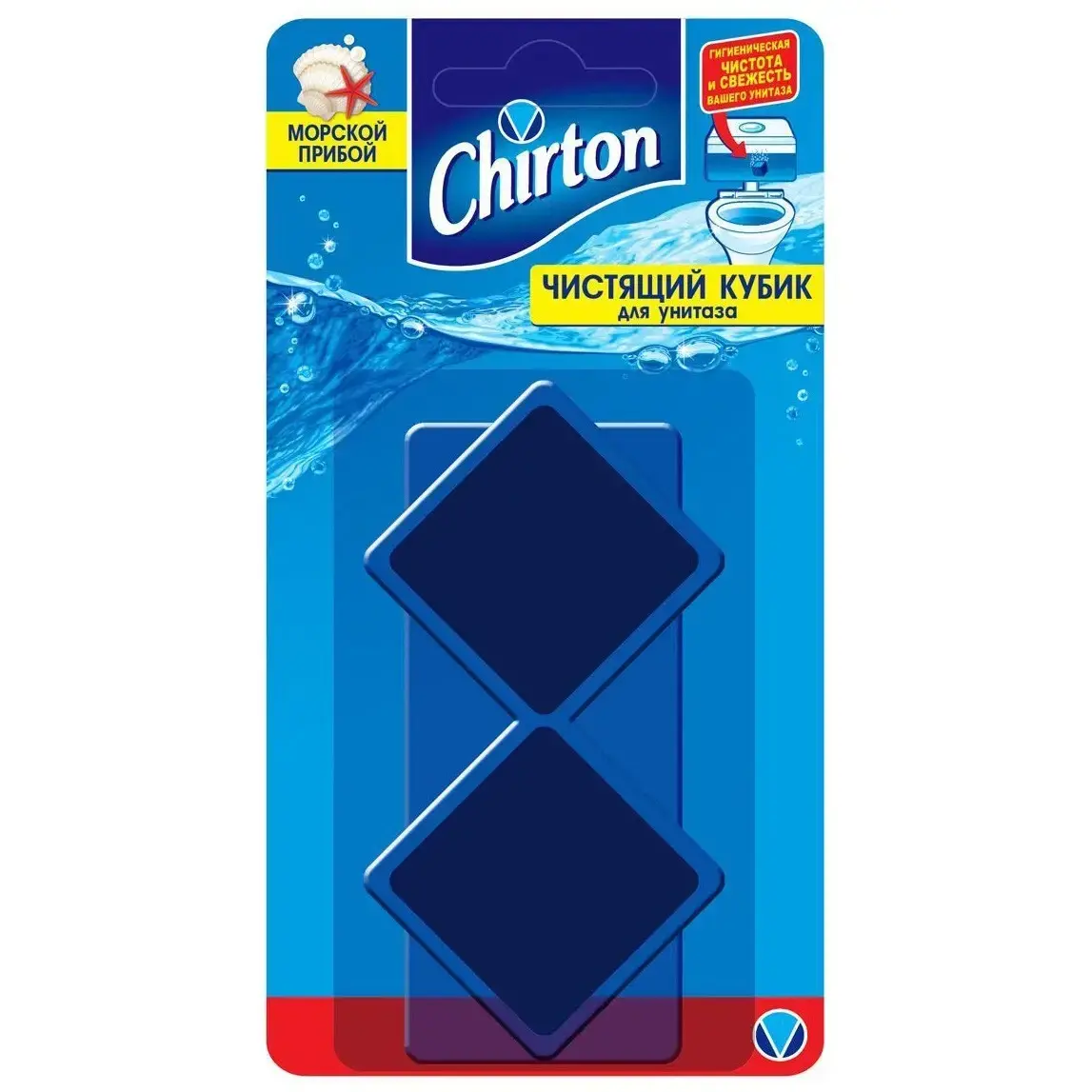 Забудьте о ежедневной утомительной чистке унитаза. Чистящий кубик 'Морской прибой' от Chirton обеспечивает непрерывную гигиеническую защиту на протяжении нескольких недель.