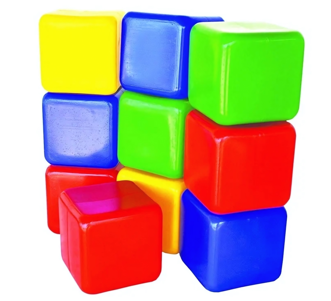 - Безопасная конструкция: кубики имеют выраженные скругленные углы и слегка вогнутые грани, что обеспечивает удобный и надежный захват маленькой ладошкой.