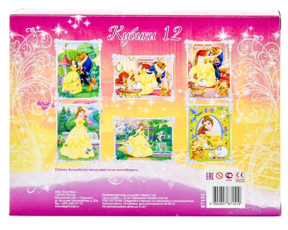 Кубики-пазл Disney «Бель», 12 элементов, пластик, развивающая игра для детей 3+