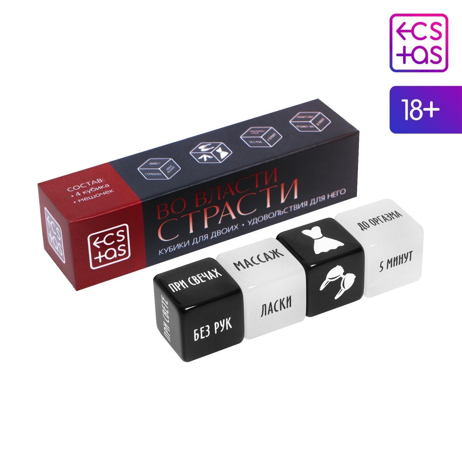 Кубики имеют стандартный размер и выполнены в черно-белой цветовой гамме, что придает им стильный и современный вид. Упаковка также оформлена с учетом всех деталей, чтобы вы могли легко хранить и использовать кубики. Не забывайте, что это товар для взрослых, и он предназначен для использования только лицами старше 18 лет.