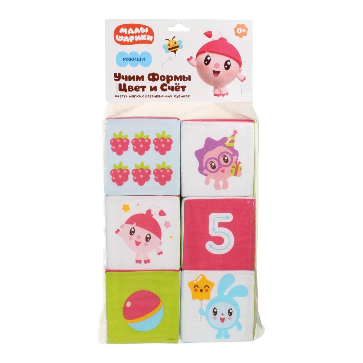 Кубики "Малышарики. Формы, цвета" Мякиши, размер 10x10 см, 6 шт, 0+