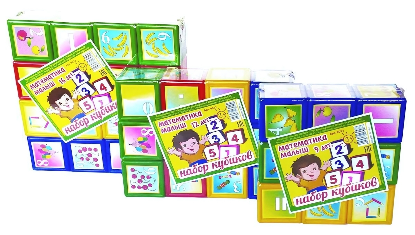 Кубики развивающие «Математика малыш», 12 деталей, пластик, цифры и картинки, от 3 лет