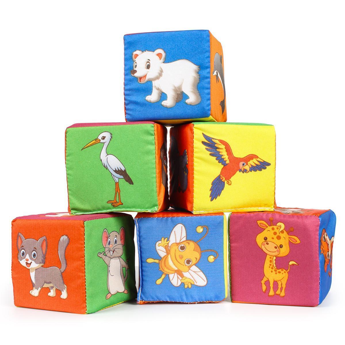 Мягкие кубики 'Весёлый зоопарк', 7×7×7 см, текстиль, разноцветный принт