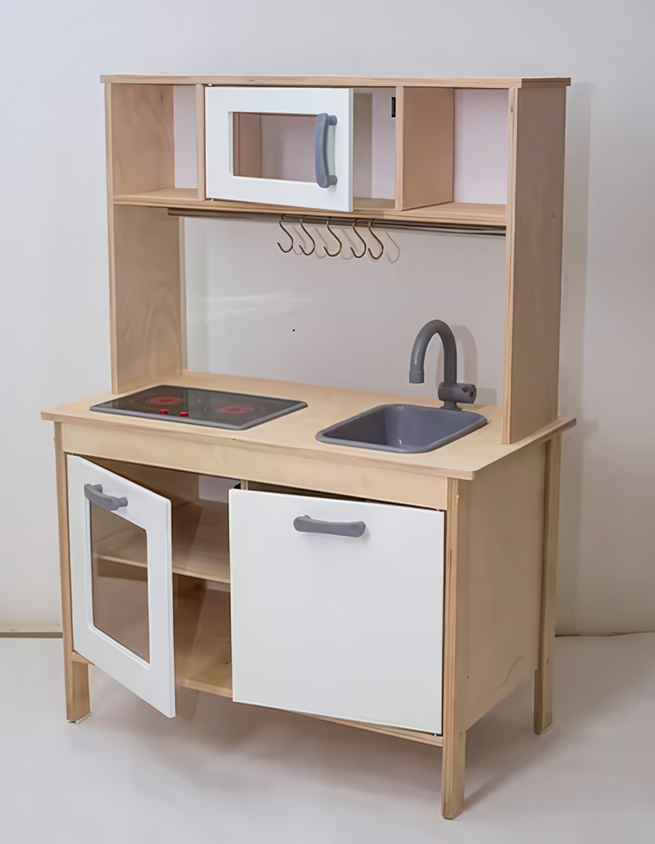 Создайте пространство для творчества и развития вашего ребенка с реалистичной деревянной кухней Alatoys. Модель "ДК06" — это не просто игрушка, а полноценный игровой центр, который помогает детям осваивать важные социальные навыки, подражая взрослым в процессе сюжетно-ролевых игр. Благодаря нейтральному исполнению в цветах светлого дерева и белого лака, кухня гармонично вписывается в интерьер любой современной детской комнаты, подходя как для мальчиков, так и для девочек.