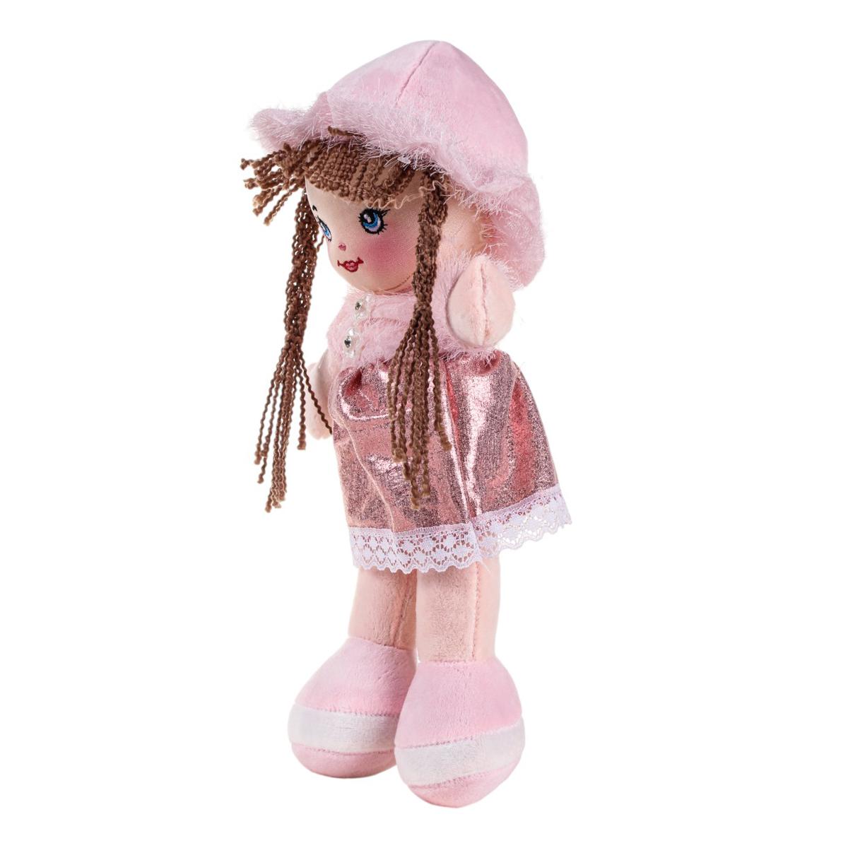 Размер куклы составляет 18x32 см, что делает ее удобной для игры и хранения. Она легкая и легко помещается в детские руки. Пластиковые пуговицы на платье добавляют реалистичности, а розовые туфельки с белой подошвой завершают образ. Эта плюшевая кукла станет не только игрушкой, но и верным другом для вашего малыша.