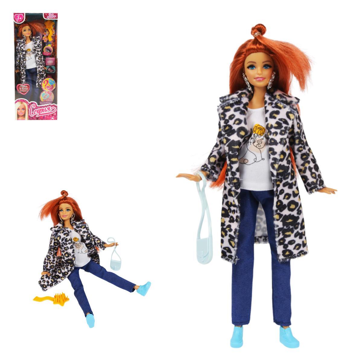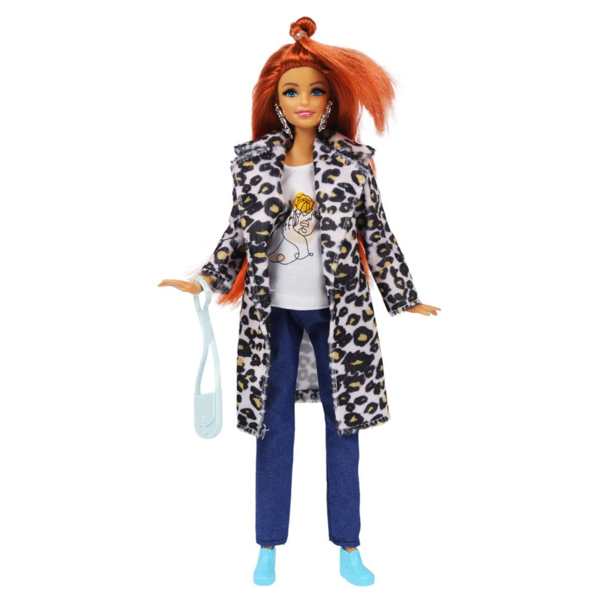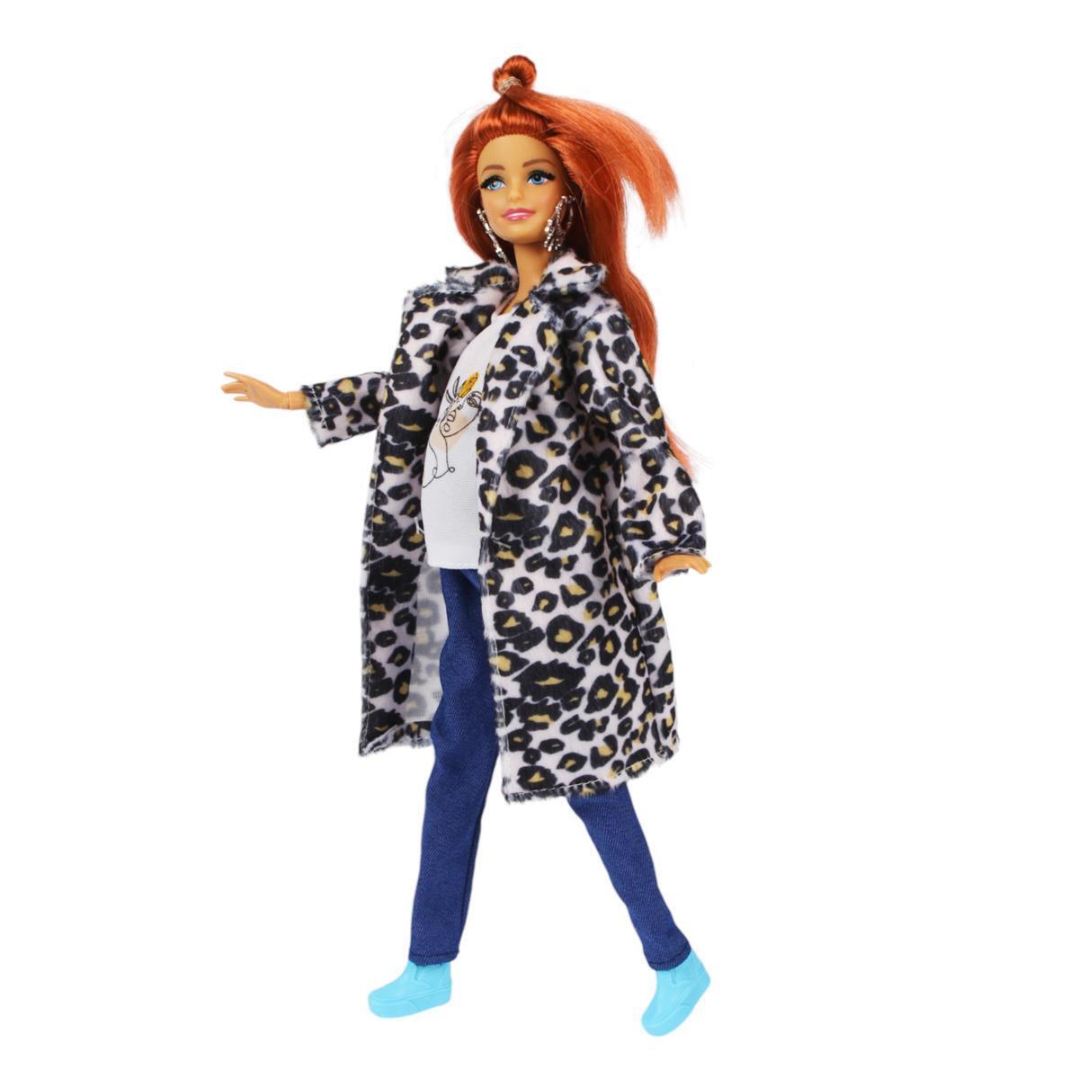 - Кукла София в леопардовом пальто и джинсах