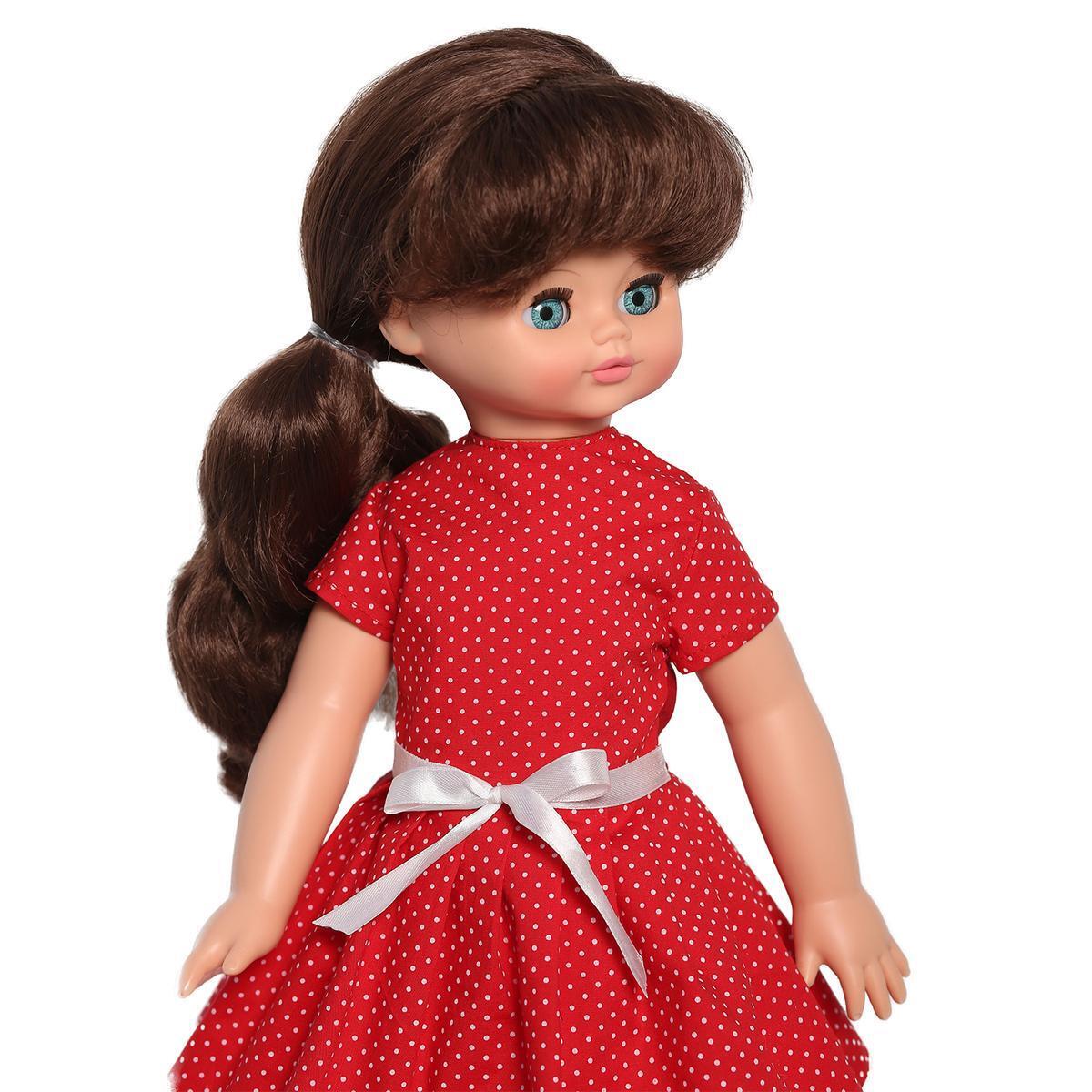 Кукла подходит для детей от 3 лет и старше, обладает мягкими подвижными руками и выраженными яркими глазами, которые закрываются, что делает игры более реалистичными. В комплект входит одежда из натуральных тканей — платье с горошком, пояс-бант и обувь. Благодаря съемным элементам одежды ребёнок сможет самостоятельно менять образы куклы, что способствует развитию мелкой моторики и фантазии.