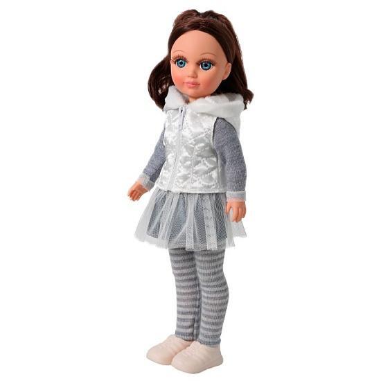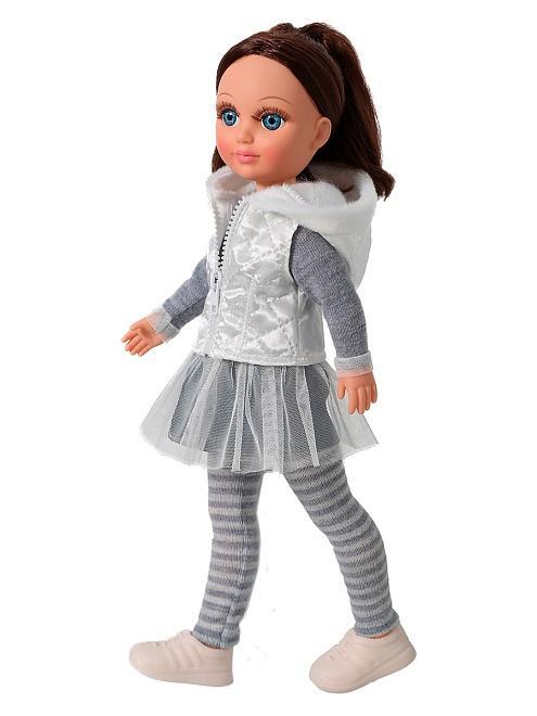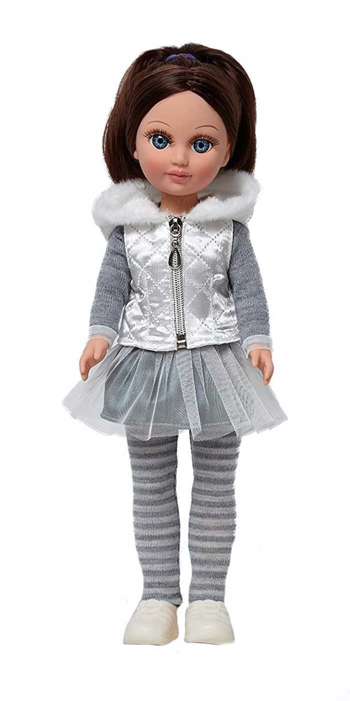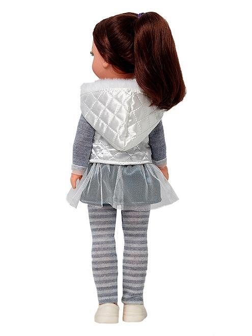 Кукла имеет продуманную конструкцию: ее ручки и голова выполнены из мягкого винила, а туловище — из пластмассы, что позволяет ребёнку удобно переодевать ее, садить и ставить на ножки. В комплект входит модная одежда: вязаный пуловер с аппликацией, трикотажные лосины, атласный жилет с капюшоном, юбка из ткани и сетки, а также аккуратные туфли — все элементы легко снимаются и надеваются, погружая ребенка в мир творческих игр.