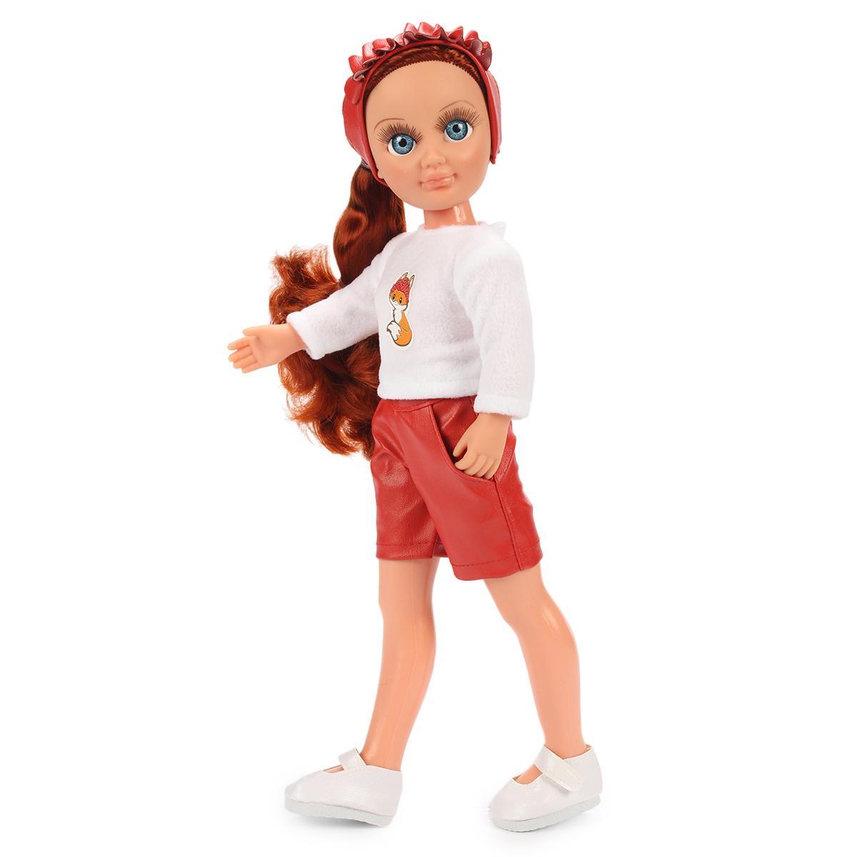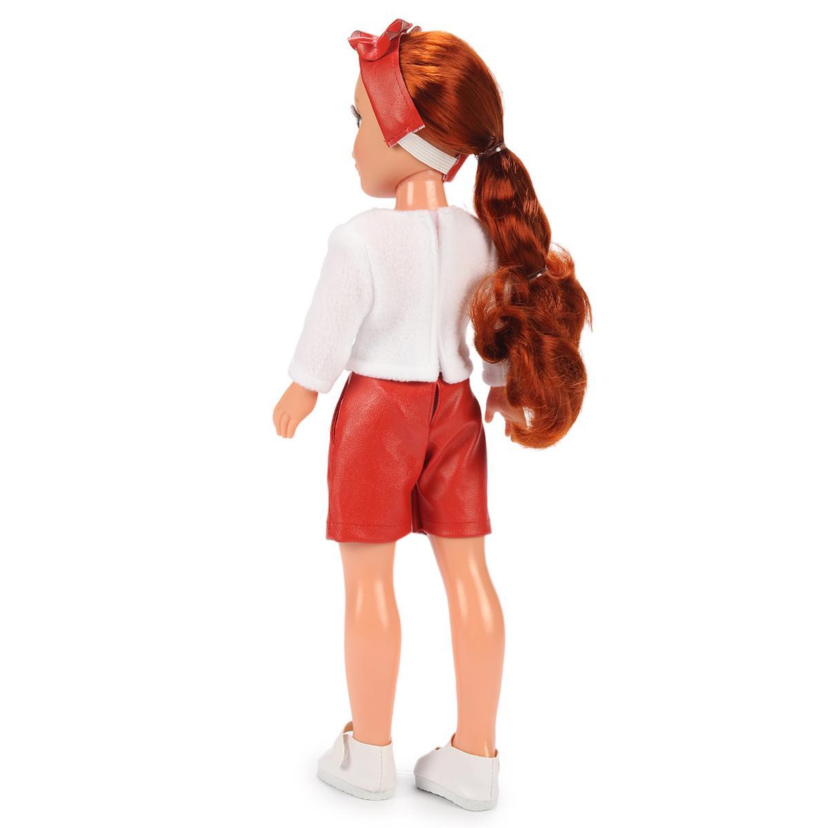 Рост куклы составляет 42 см, что делает ее удобной для игры и хранения. В комплект одежды входят свитшот с термоаппликацией, красные шорты, ободок из искусственной кожи, трусики и туфельки. Все элементы костюма продуманы до мелочей и помогут погрузить ребенка в увлекательный мир игры.