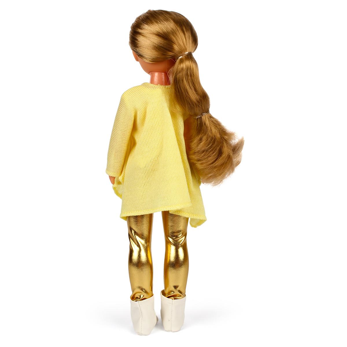 Кукла имеет рост 42 см и выполнена из качественных материалов: винила, пластика и текстиля. Она озвучена и может произносить несколько фраз, что делает игру более интерактивной и увлекательной. Анастасия одета в стильную одежду, включающую вязаный кардиган, футболку, лосины из парчи и модные сапоги, что позволяет ей выглядеть ярко и привлекательно.
