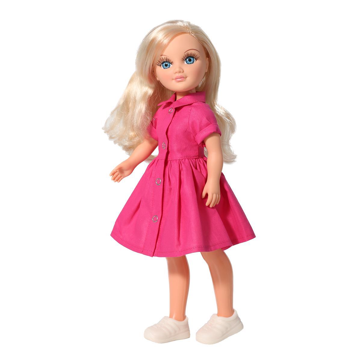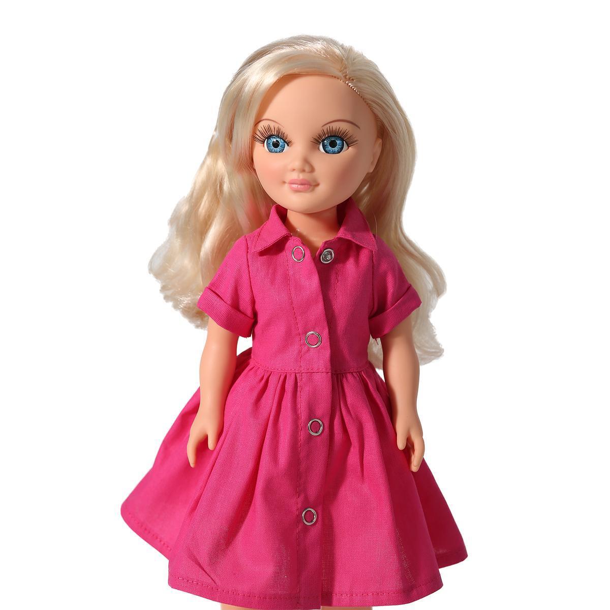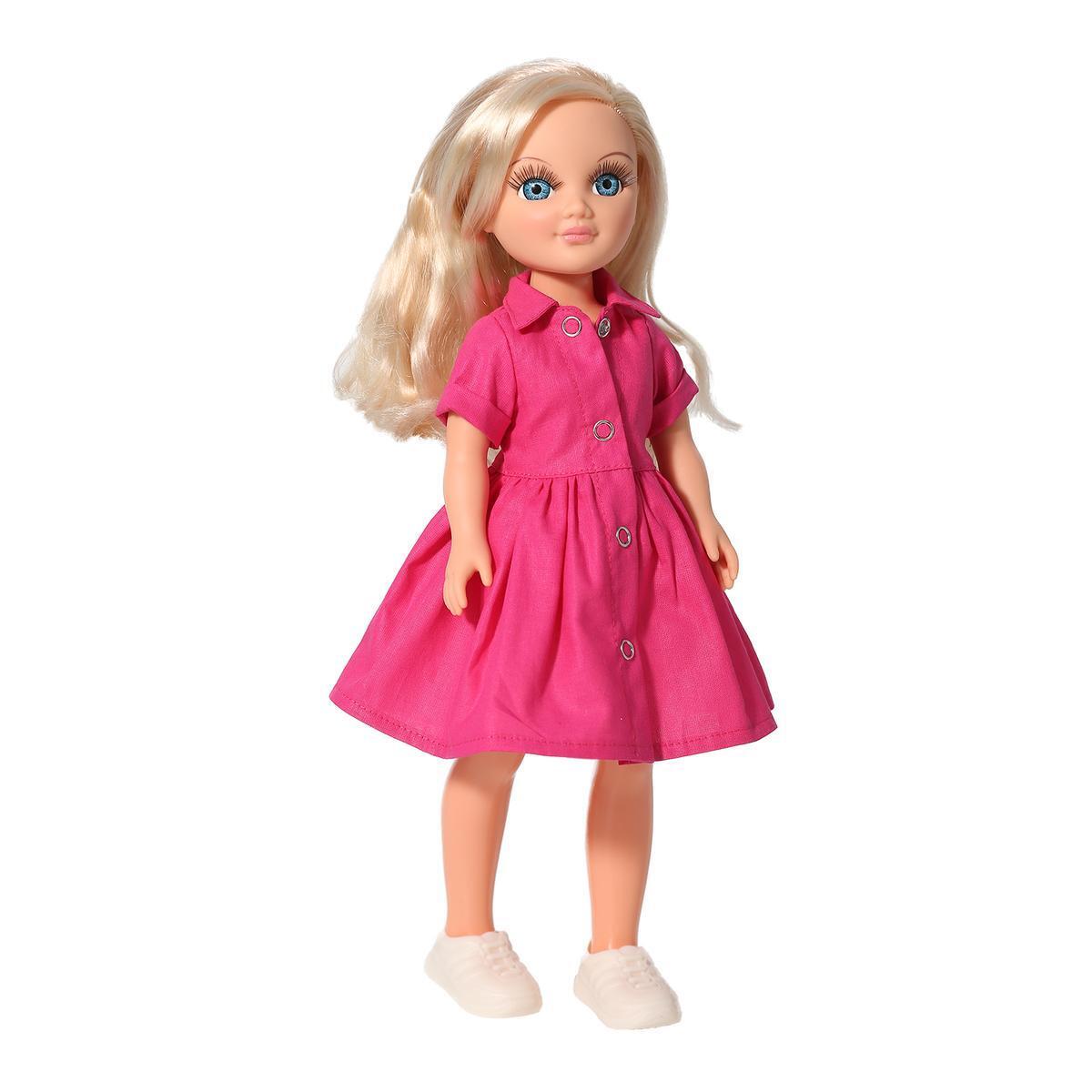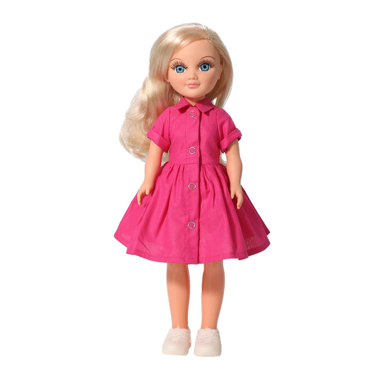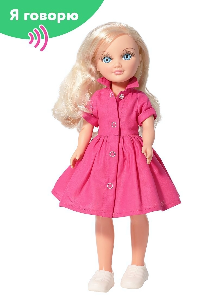 Высота 42см – оптимальный размер для детских рук. Светлые волосы и голубые глаза создают неповторимый образ, а стильное розовое платье с пуговицами добавляет реализма. Кукла выполнена из безопасных материалов: пластика, ПВХ, текстиля и нейлона.