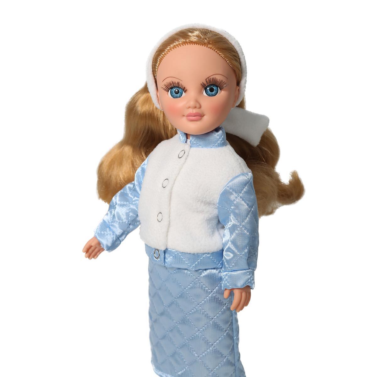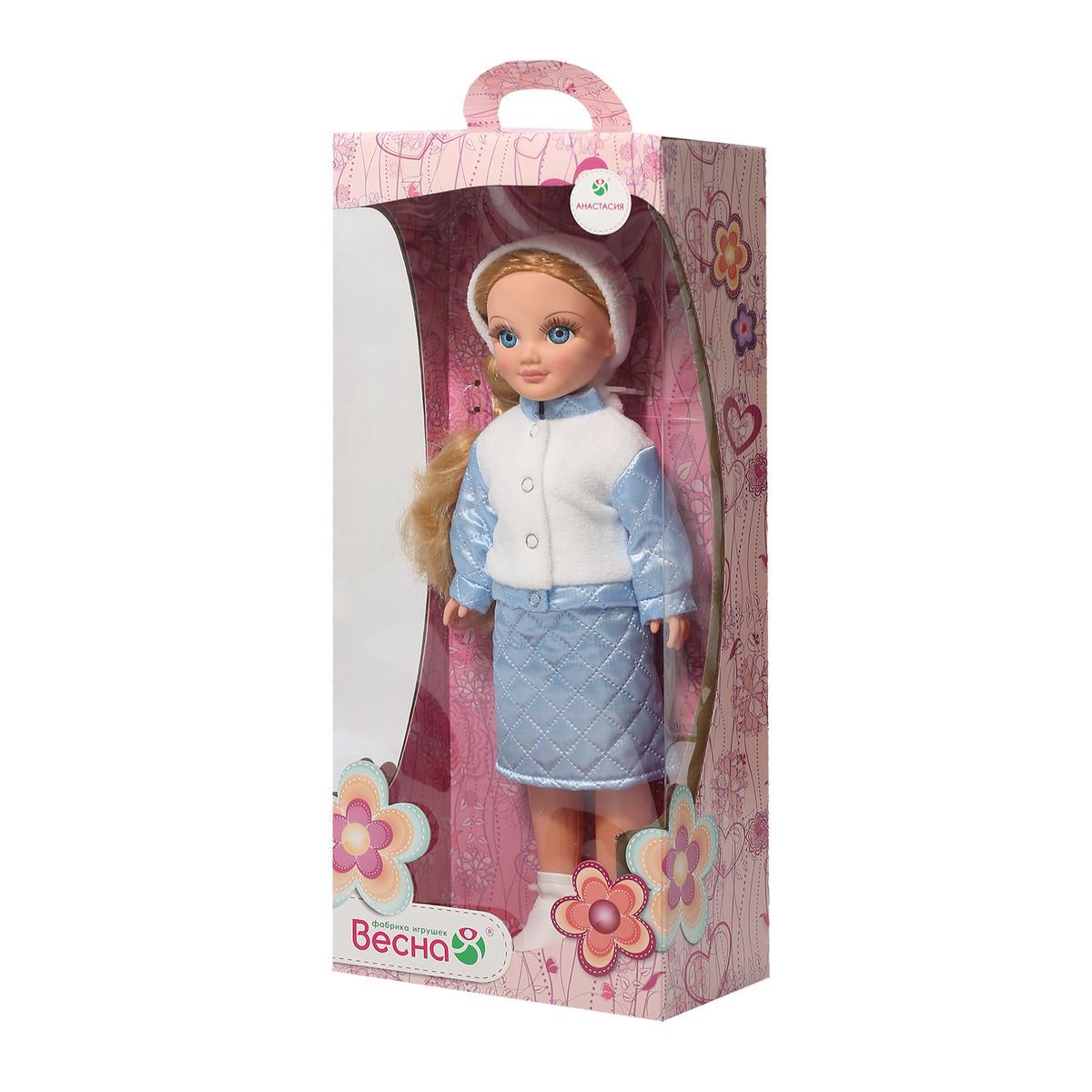 Кукла имеет рост 42 см и выполнена из качественных материалов. Ее ручки и голова сделаны из эластичного винила, а туловище и ноги — из прочного пластика. Анастасия одета в стильную зимнюю одежду, которая включает футболку, комбинированную куртку, юбку из термосинтепона, повязку на голову, трусики и белые сапоги. Благодаря продуманной конструкции, куклу можно легко сажать, ставить на ножки и переодевать, что добавляет разнообразия в игру.