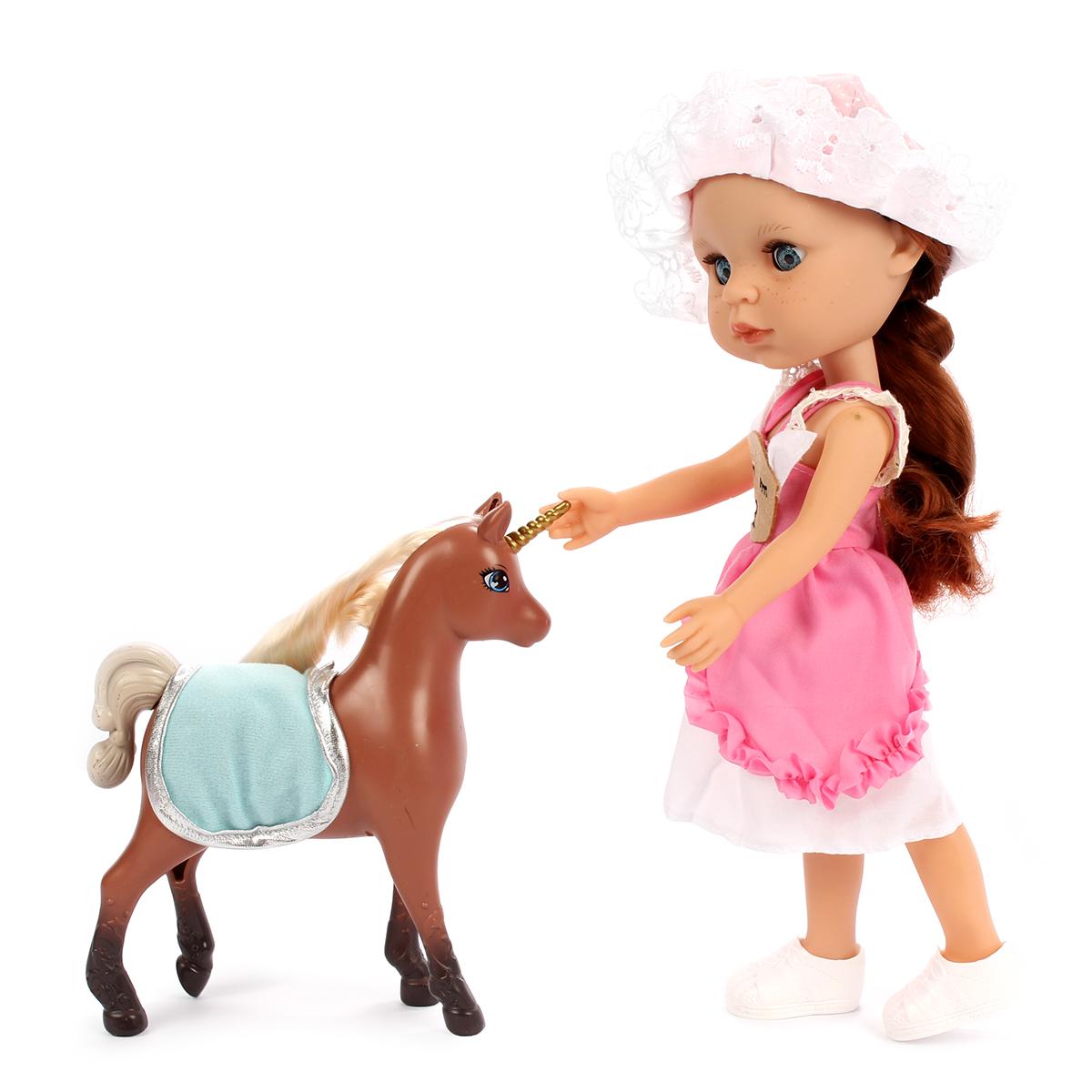 Эта мягкая и детально проработанная кукла длиной 32,5 см прекрасно подойдет для игр и создания различных сюжетов. В комплект входит милый питомец – волшебная лошадка-единорог с красивыми глазами, длинной гривой и рогом, что добавит волшебства в игровые сценарии. Благодаря реалистичным деталям и высокому качеству изготовления, кукла станет любимой игрушкой каждой девочки.