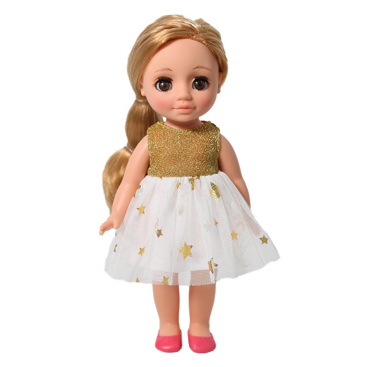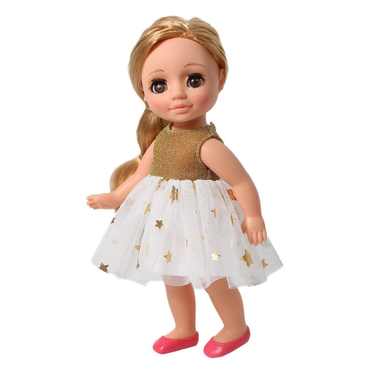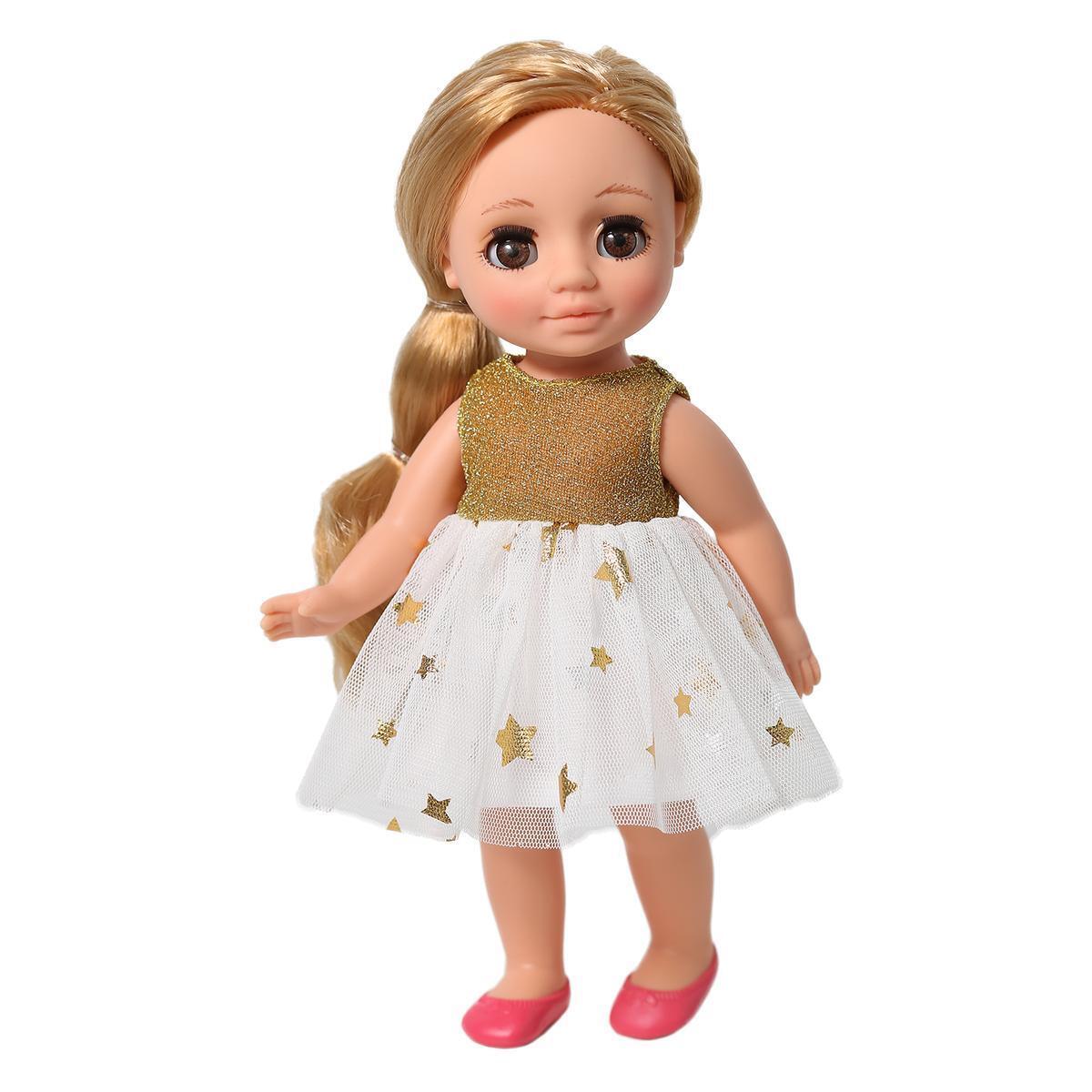 Кукла с выразительными глазами и нарядом из золотистого платья станет любимицей вашего ребёнка. Элементы одежды легко снимаются, открывая безграничные возможности для развития фантазии и сюжетных игр.