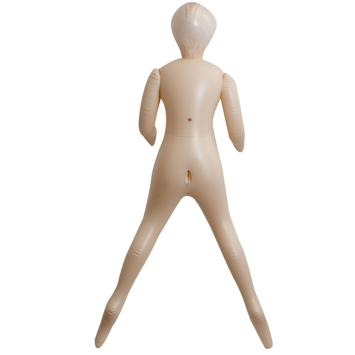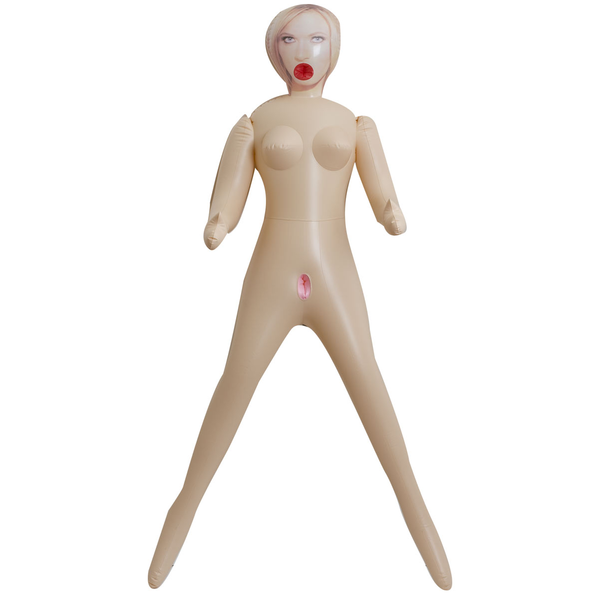 Кукла изготовлена из поливинилхлорида (ПВХ, PVC) — прочного и эластичного материала, который хорошо держит форму после надувания и устойчив к растяжению. Поверхность гладкая и глянцевая, что облегчает очищение после использования. В сдутом состоянии изделие занимает минимум места, поэтому его удобно хранить дома или брать с собой в поездки.
