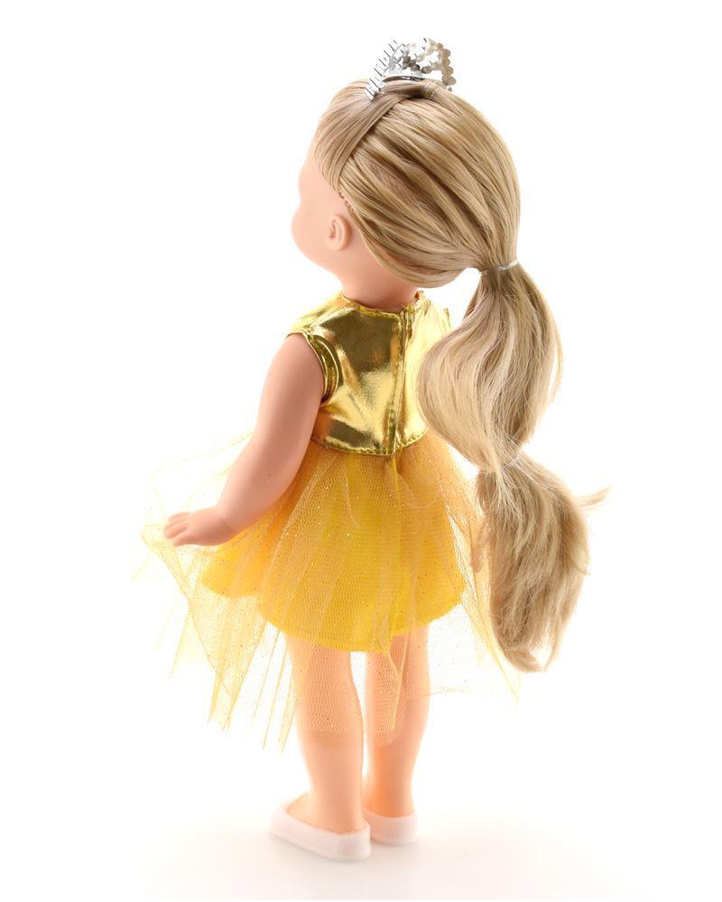 Высота куклы составляет 30 см, что делает ее удобной для игры и хранения. Эля одета в шикарное золотистое платье, которое привлекает внимание и радует глаз. Эта кукла станет отличным подарком на день рождения или любой другой праздник, ведь она не только красива, но и функциональна.