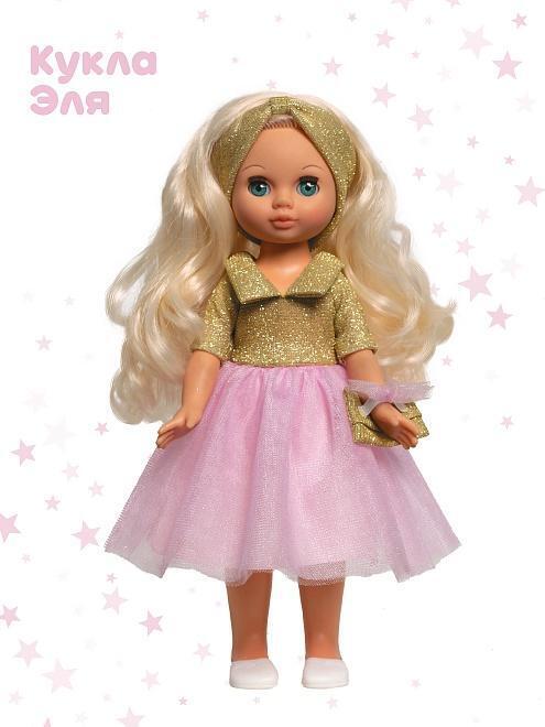 Кукла одета в красивое платье с пышной розовой юбкой и золотистым верхом, дополнено белыми туфельками и аксессуарами — повязкой и сумкой-клатч. Благодаря компактным размерам, ее удобно брать с собой в садик или на прогулку. Кукла выполнена из безопасных материалов (пластик, винил), что важно для малышей и способствует долгосрочной безопасной эксплуатации.