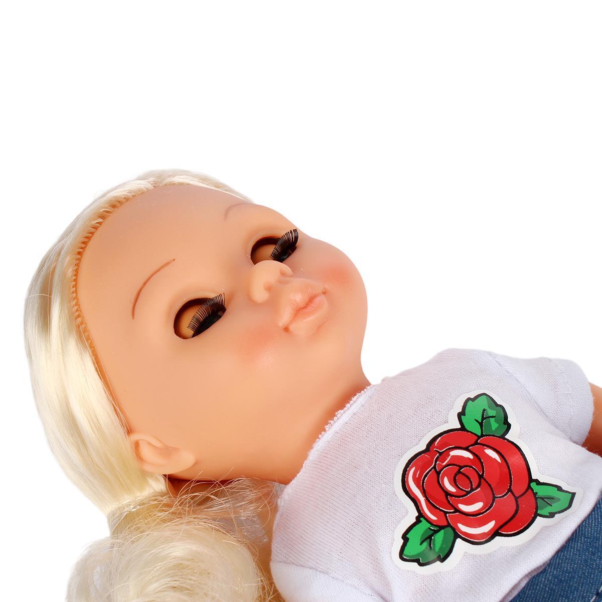 Яркие детали одежды из качественного кулира и денима сохраняют форму после стирки. Безопасные материалы и отсутствие мелких деталей делают игрушку подходящей для детей от 3 лет. Реалистичные черты лица с улыбкой и голубыми глазами развивают эмоциональный интеллект.
