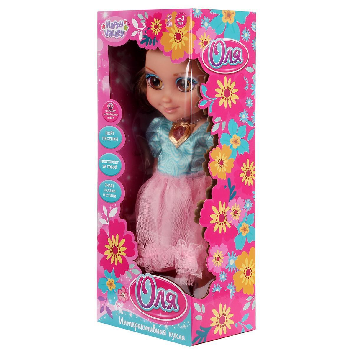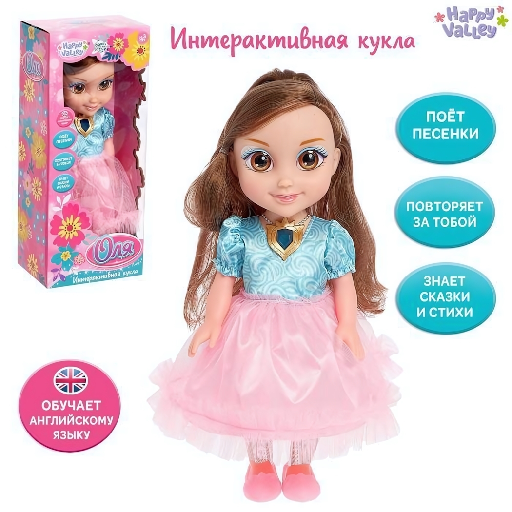 Интерактивная кукла «Оля» с диктофоном, 15 фраз, обучение английскому, 30 см, голубая блуза, розовая юбка (Happy Valley)