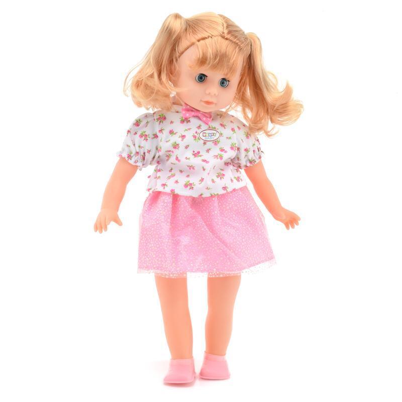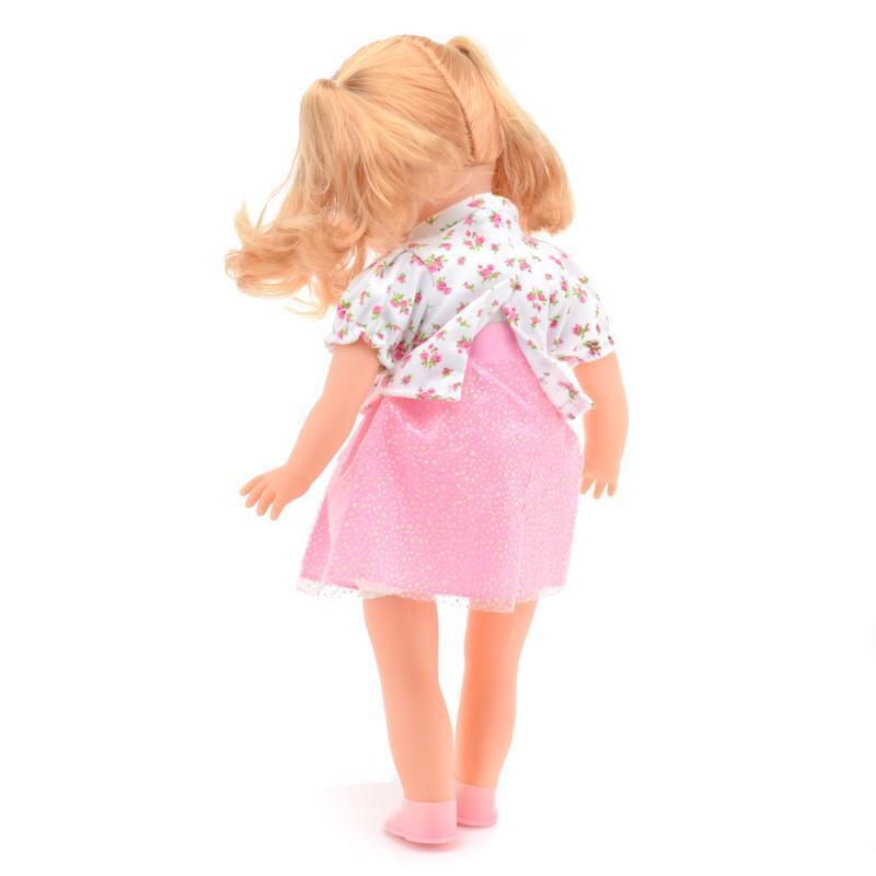 Кукла отличается аккуратной отделкой, светлыми длинными волосами, которые можно расчёсывать и заплетать, создавая разные причёски. Ее подвижные руки и поворачивающаяся голова позволяют ребенку моделировать различные игровые ситуации, развивая мелкую моторику и воображение.