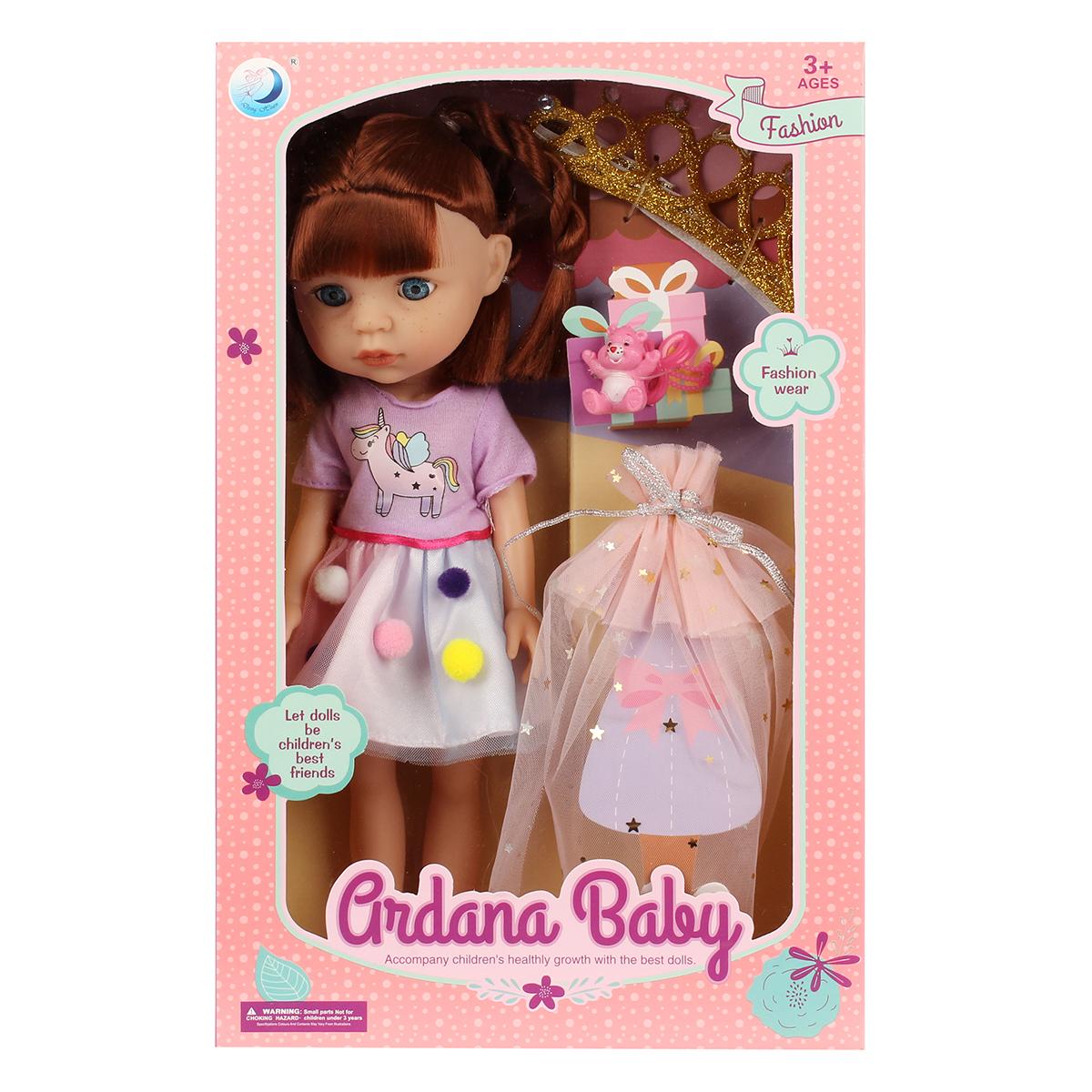 Кукла "Ardana Baby" 32,5 см, шатенка с косичками, диадема и накидка, аксессуары 2 шт
